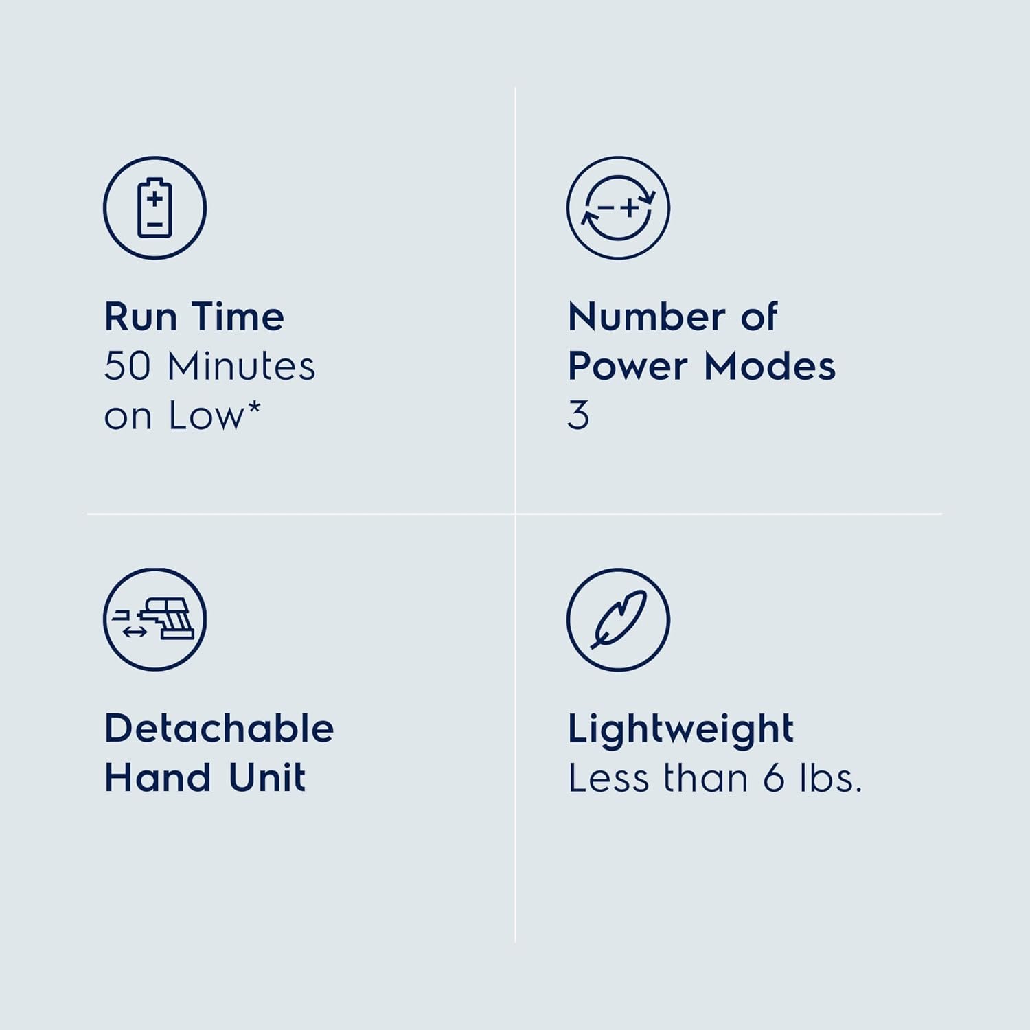 Long-Lasting Cordless Power: Enjoy up to 50 minutes*** of run time; Set your vacuum to Auto Mode, which automatically adapts the vacuum’s suction power depending on the floor type, making it ideal for multi-surface cleaning and maximizing run time