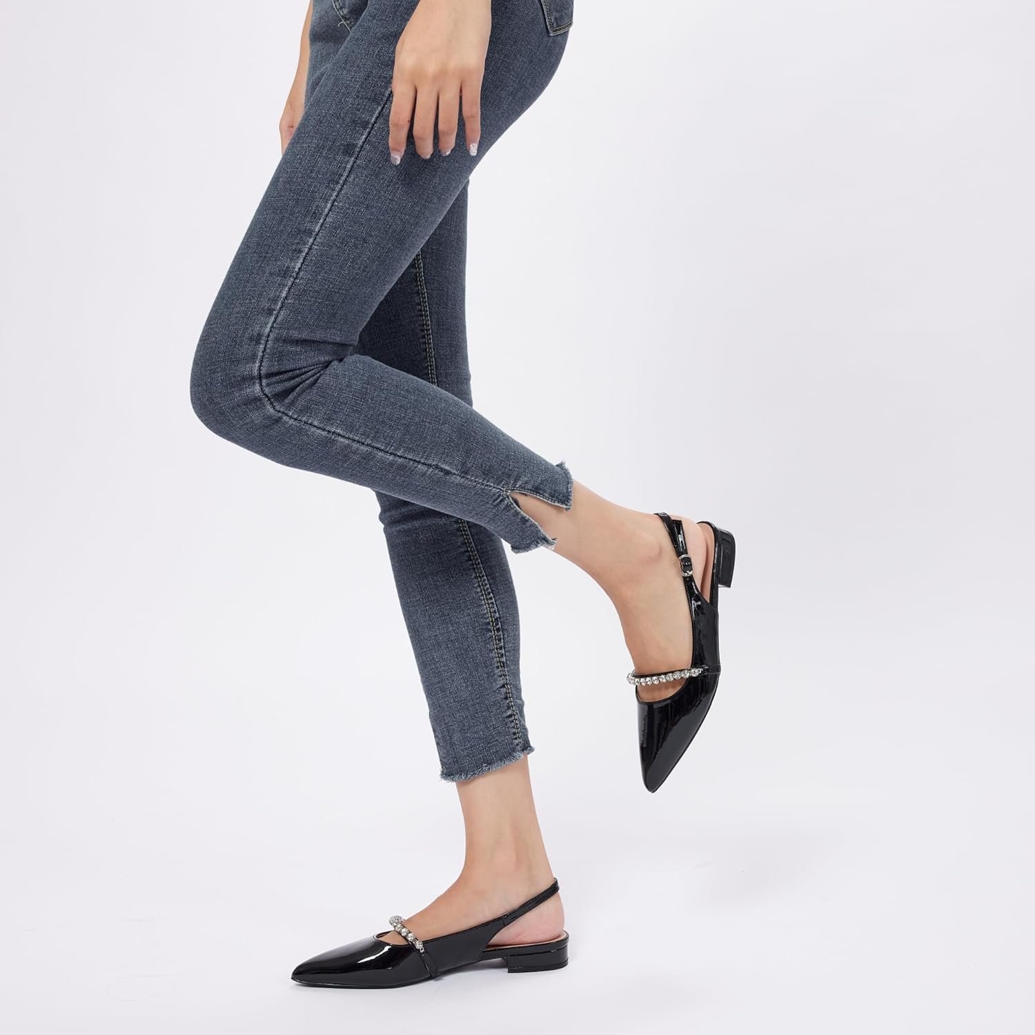 Rhinestones chain decoration adds some glamour and charm to your look. Ladies flat shoes catch the light and reflect it beautifully.