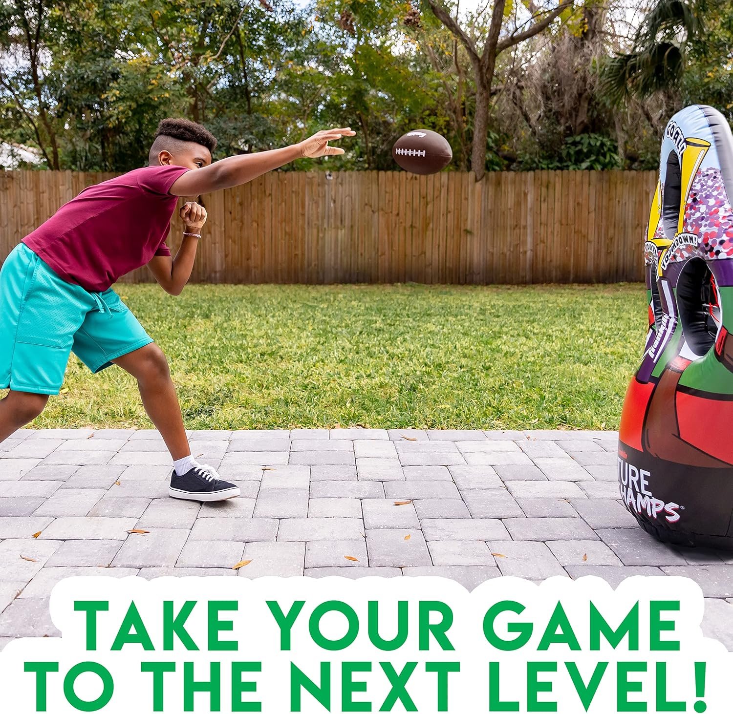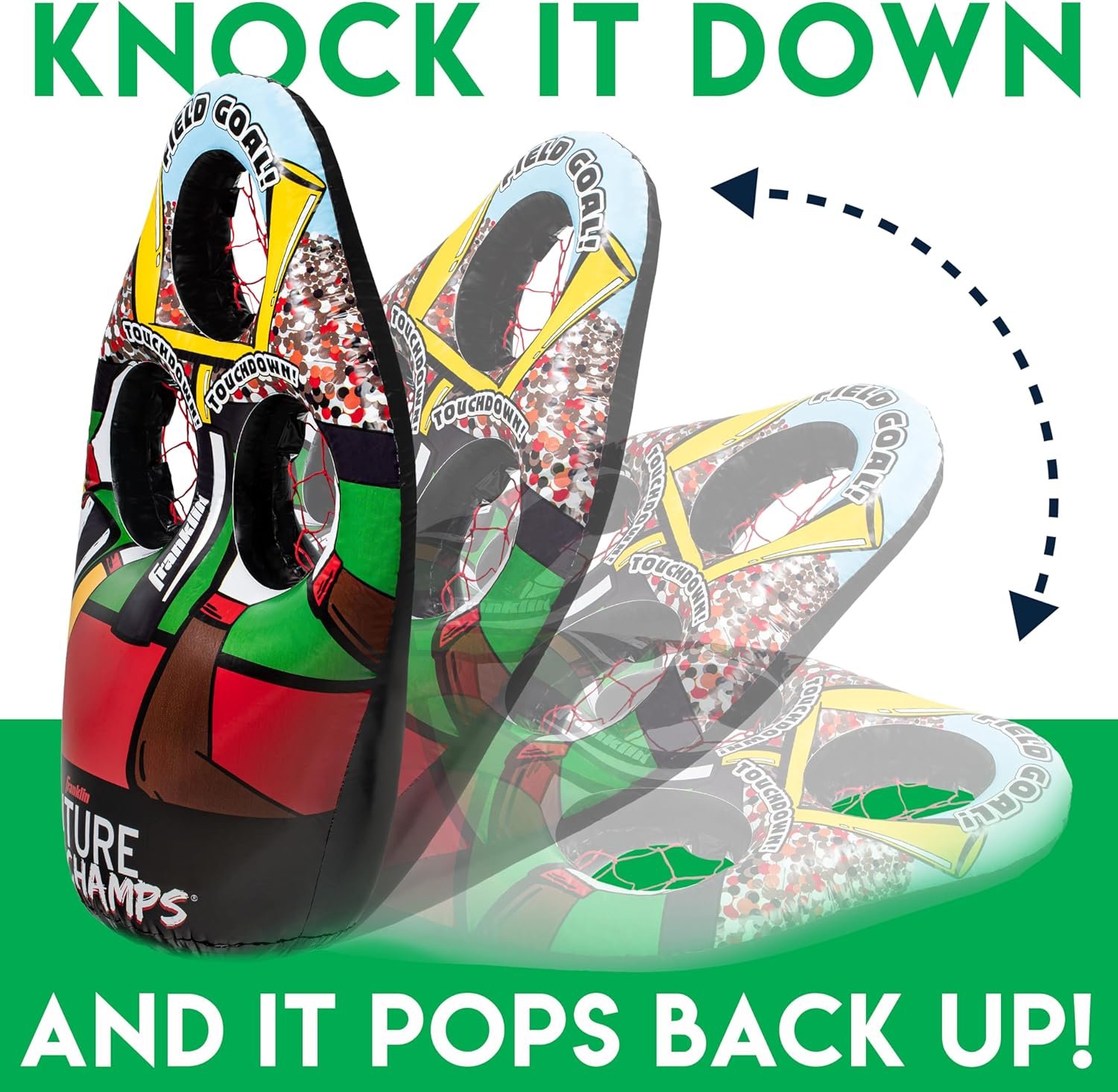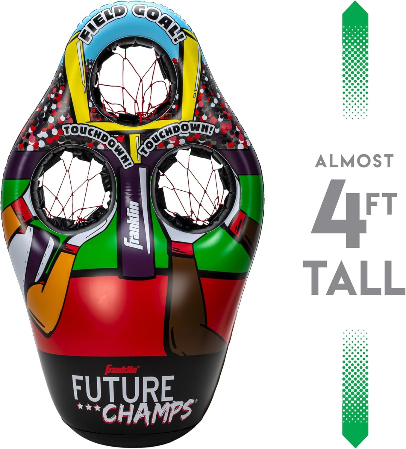 FOOTBALL ON THE GO: The inflatable 3-hole football target stores and travels easily, making it perfect to take on the go
