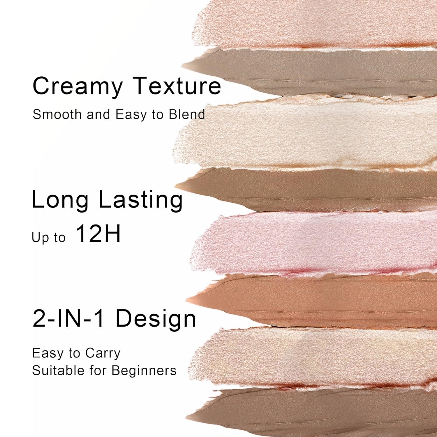 Smudge-Proof Wear: Enjoy a flawless complexion all day with our smudge-proof, long-wearing formula. The highlighter delivers a radiant glow, while the contour adds depth without fading or creasing. Sweat- and humidity-resistant, it stays put for a picture-perfect look from morning to night.