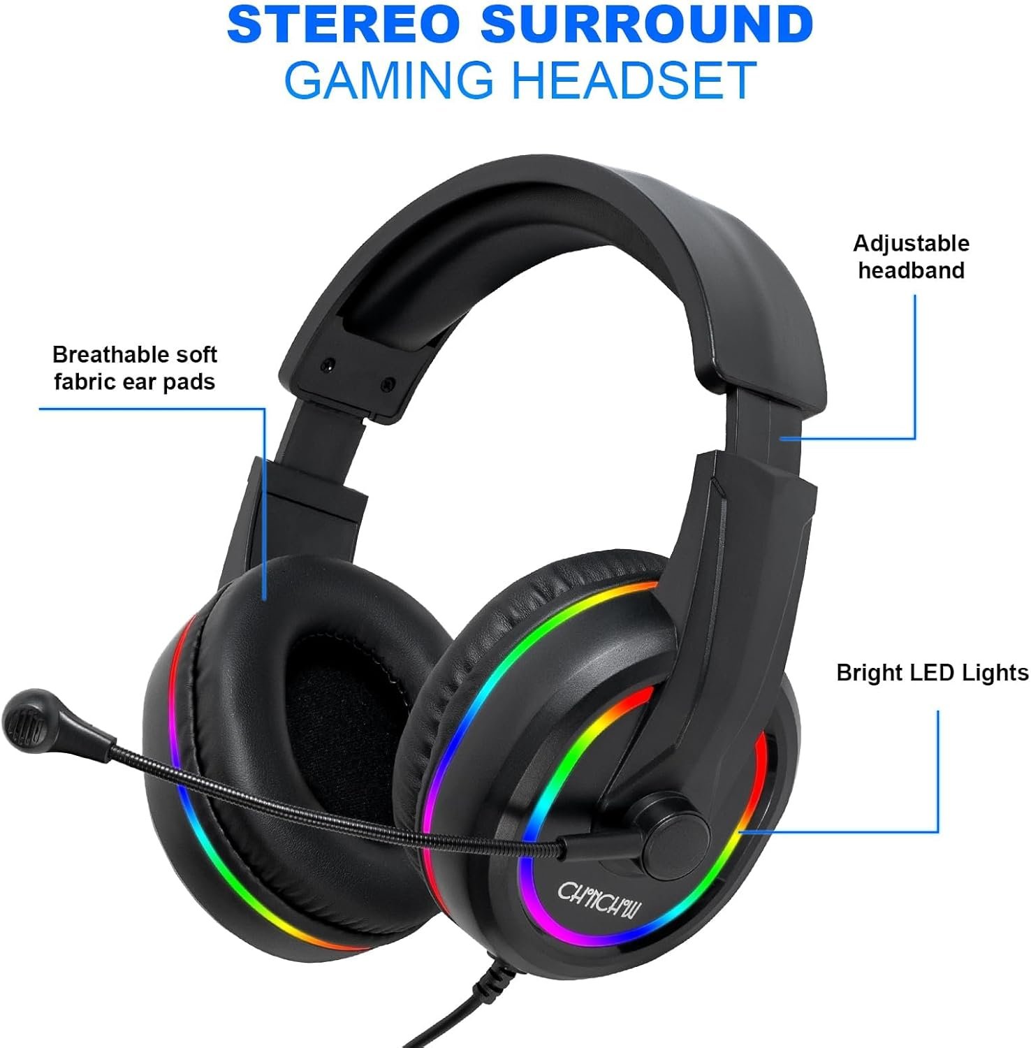 【LED Backlit Gaming Headset】 The breathable soft fabric ear pads and adjustable memory foam headband keep you gaming comfortably for a long time. The 50mm drivers and 105 dB sensitivity provide powerful and clear sound (Package includes 1 3.5mm female to 2 RCA male adapter cables, allowing you to use both headphones and microphone)