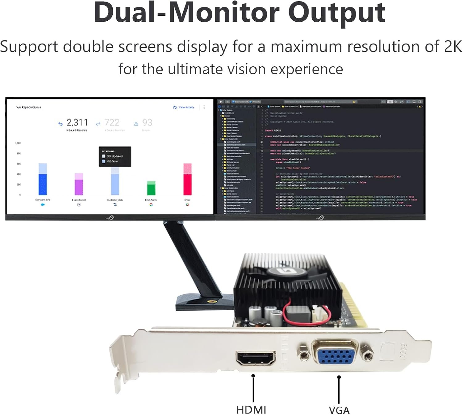 With 2048MB of memory capacity, this graphics card can meet the demands of home entertainment, light gaming, and office tasks. Offers VGA and HDMI interfaces, making the video card easy to connect different types of displays. The VGA interface is suitable for analog signals and the HDMI interface supports high-definition video transmission.Features a half-height low-profile design that making it compatible with various computer cases, especially SFF tower match with the included brackets.