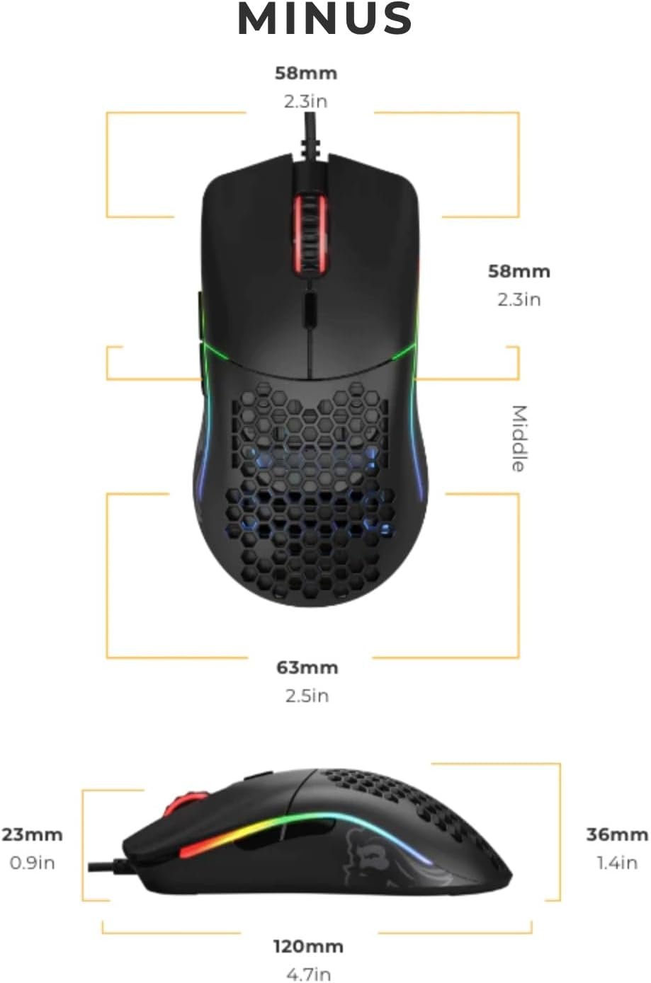 Built to last: Model O-‘s honeycomb design helps create the ultimate lightweight mouse, without sacrificing durability. State of the art Omron switches that are good for 20M clicks, and top-tier build quality makes the Model O- (Minus) built to last.