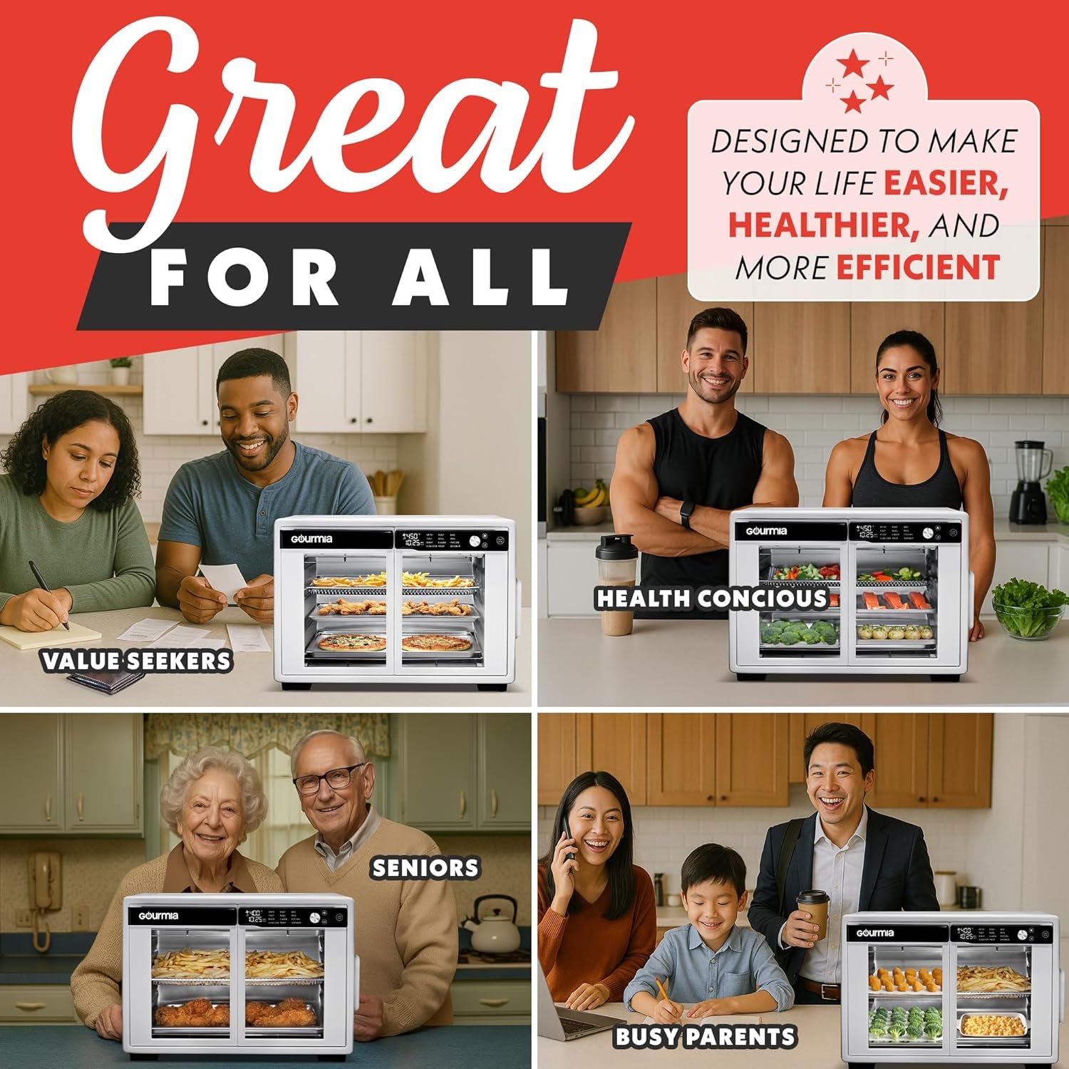 Spacious XL Capacity, Family-Ready – Fits up to 9 slices of bread or a 13″ pizza—perfect for meals, snacks, and entertaining