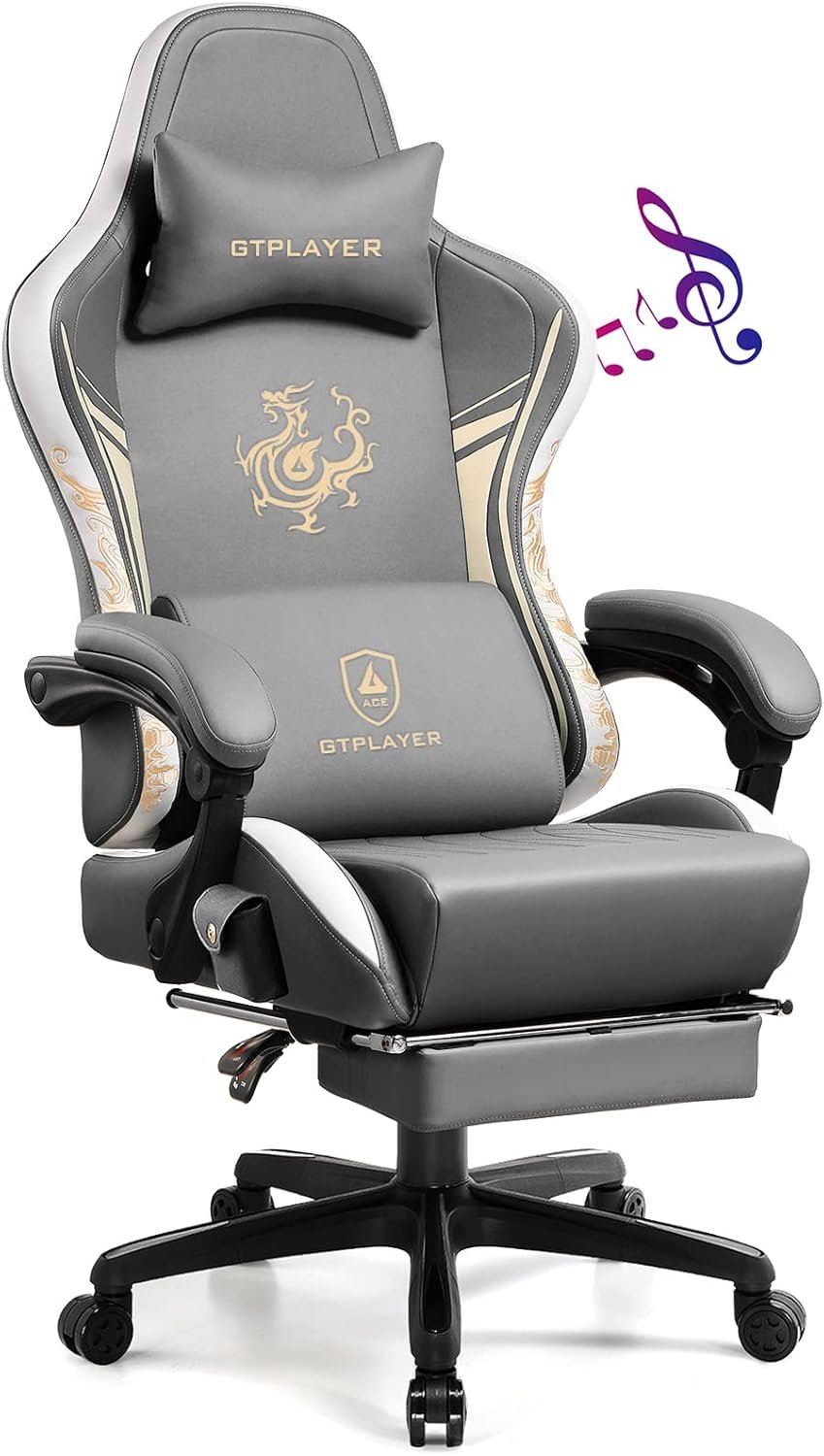 GTPLAYER Gaming Chair with Bluetooth Speakers and Footrest, Dragon Series Video Game Chairs, Heavy Duty Ergonomic Chairs, Esports Gaming Computer Office Chair (Gray)