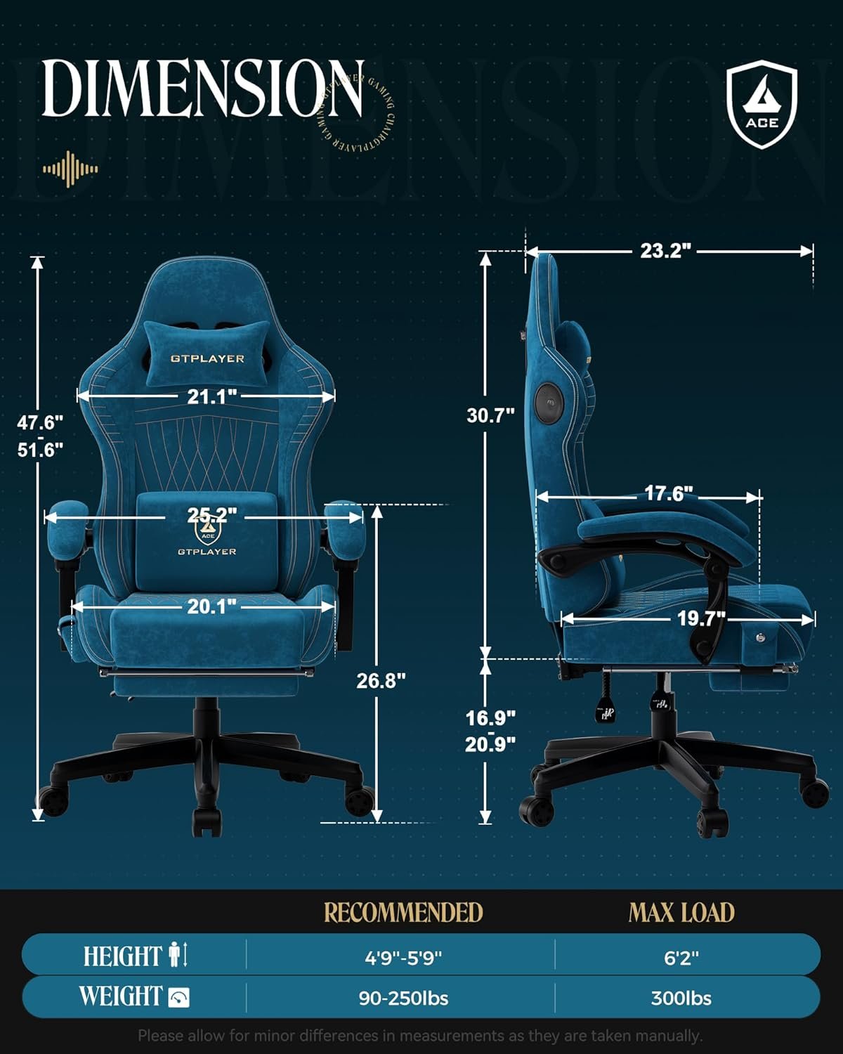 【Ergonomic Gaming Chair】Ergonomic curve of the backrest fits human anatomy and conforms to your body for a perfect sitting experience. Flexible headrest and memory foam lumbar pillow provide a soft and comfortable support. 15% wider wings make sure there is no limitation on your shoulders’ movement. Suitable for gaming, working, studying and home office.