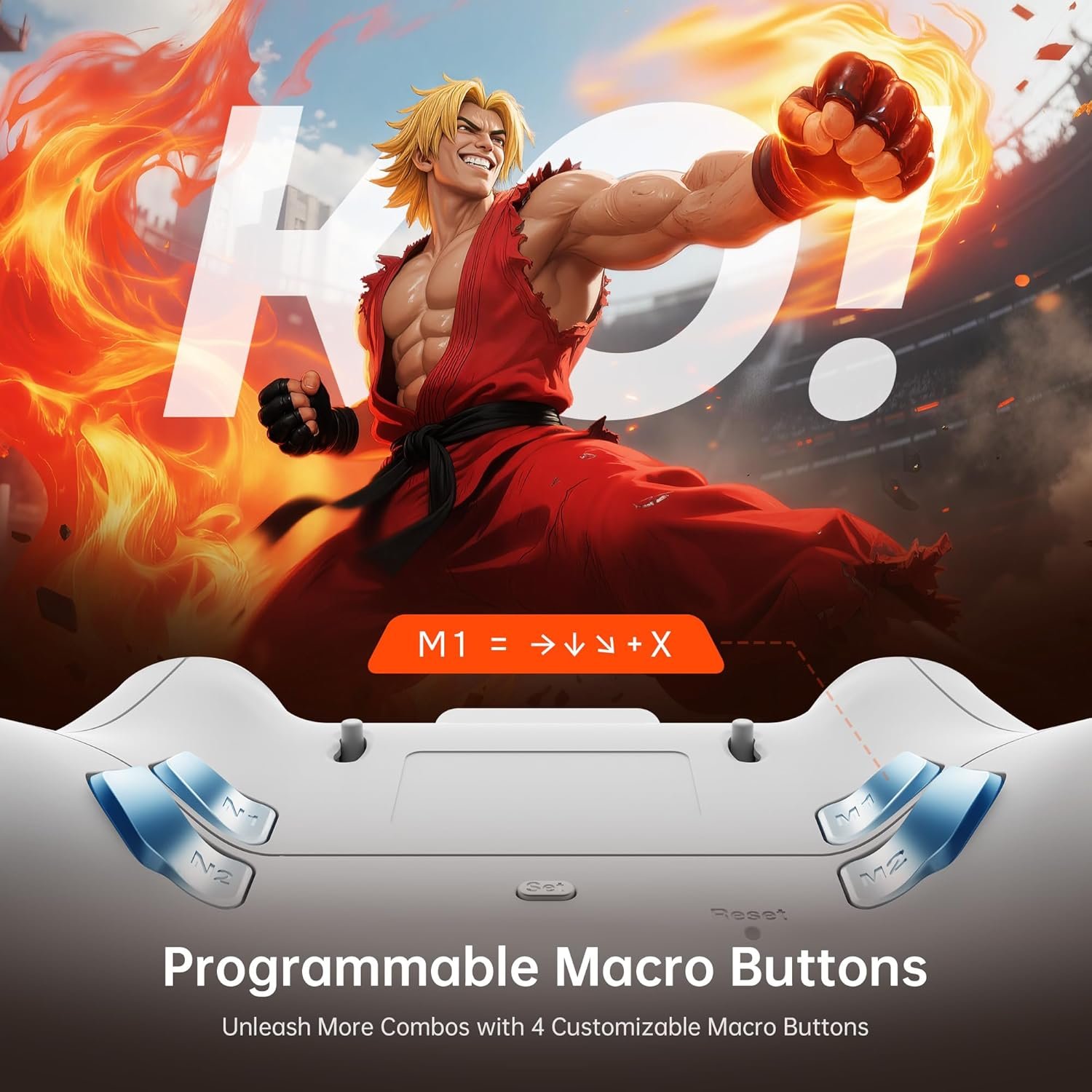 🎮 Interactive Screen & 4 Programmable Back Buttons: Effortlessly configure vibration, turbo, macros, joystick sensitivity, and pairing via the intuitive interactive display, no complex button combos needed! Four programmable back buttons let you assign ultimate skills or shortcuts, ensuring lightning-fast reactions in game.