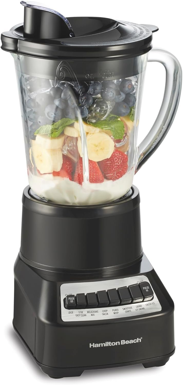 Equipped with 700 watts of peak blending power, this countertop blender works great for liquefying frozen fruit, whipping up creamy shakes and smoothies, making pureed soups, and more. Its revolutionary Wave~Action(R) System continuously forces the mixture down into stainless steel ice-crushing blades for thorough blending from top to bottom — every time. Great for parties or everyday use. The unit includes a six-ounce dishwasher-safe durable plastic jar with a tight-fitting lid, generous handle, and drip-free spout for graceful pouring. The versatility makes it perfect for those looking for a protein shake blender or smoothie blender. Perfect for everyday use, this versatile Hamilton Beach blender for kitchen makes it easy to create your favorite drinks – combining the convenience of a reliable smoothie blender and drink blender into one sleek design.