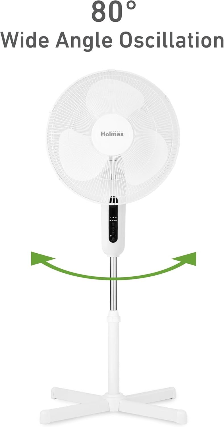 HOLMES 16″ Digital Stand Fan, 80° Oscillation, 3 Speeds, 3 Modes, 7.5-Hour Timer, Adjustable Height, 30° Head Tilt, Ideal for Home, Bedroom or Office, Remote Control, White