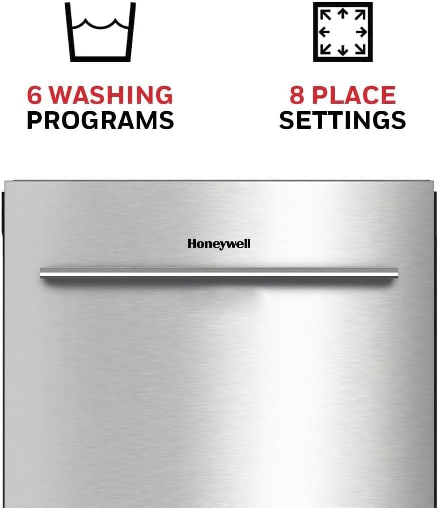 Honeywell 18 Inch Dishwasher with 8 Place settings, 6 Washing Programs, Stainless Steel Tub, UL/Energy Star- Stainless Steel