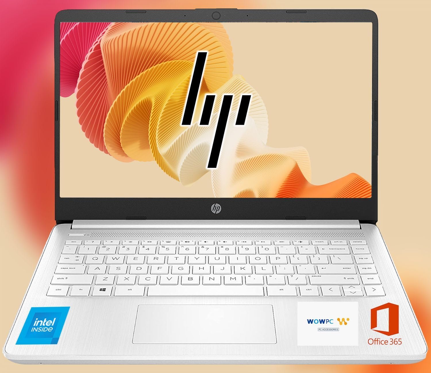 HP 14 Ultrabook, Intel CPU, 32GB RAM, 1.6TB Storage (64GB OnBoard w/ 512GB Portable Drive + 1TB OneDrive), Up to 12 Hours Battery, Windows 11 Home, Snowflake White, w/WOWPC 3-in-1 Bundle