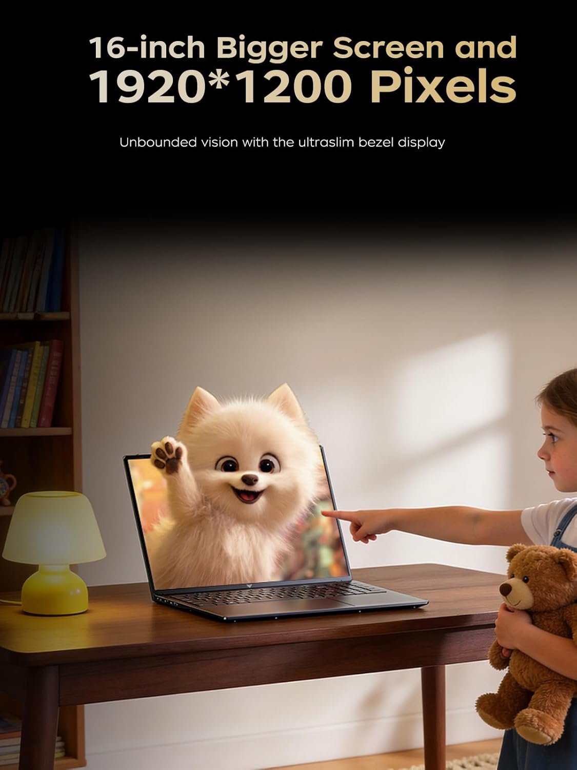 【16.0 INCH Visual Treat】Immerse yourself in a traditional laptop computer experience with an innovative thin-bezel display, offering more screen real estate for immersive viewing. The colors of the 16 inch traditional laptop are fuller, more vivid, and concise, the details on the screen are clearer, and the viewing angle is wide. It will create extraordinary visual effects for you.