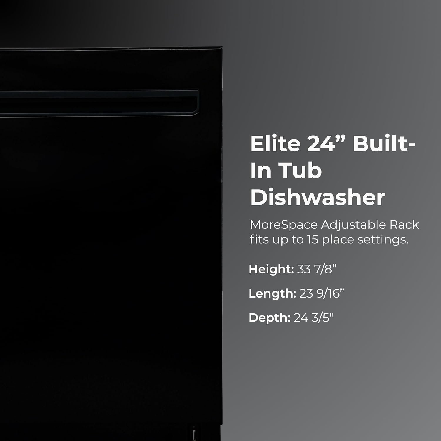 The Kenmore 24″ Built-In White Dishwasher delivers ultra-quiet performance and modern design for busy nights and delicate dishes. UltraWash Plus uses three spray arms and filtered water to power through stuck-on food. The SmartWash Cycle detects soil levels in the water and automatically adjusts the temperature, pressure, and cycle time for a deep, efficient clean every time. TurboDry uses hot air circulation and a heating element to remove moisture from every load, while the Extra Dry and Express Cycles give you cabinet-ready results faster. The TurboFlex Third Rack adds 35 percent more loading space for long utensils, tools, and flatware, and slides aside to make room for tall items below. The MoreSpace Plus Adjustable Rack shifts between three heights, even when fully loaded, so you can customize the interior for everything from oversized pots to delicate stemware. The stainless steel tub resists stains and retains heat to help improve drying performance with every cycle. Built-in LED interior lighting makes it easy to see inside, and a green floor light shows when the cycle is running. Hidden light-touch controls and a clean white finish complete the look. This dishwasher fits up to 15 place settings and includes a removable wine glass holder for added peace of mind when washing stemware. ENERGY STAR Certified and operating at just 42 dBA, it offers a powerful clean that runs quietly in the background. Built-in Leak Detection helps protect your home by monitoring water flow and automatically draining if a problem is detected.
