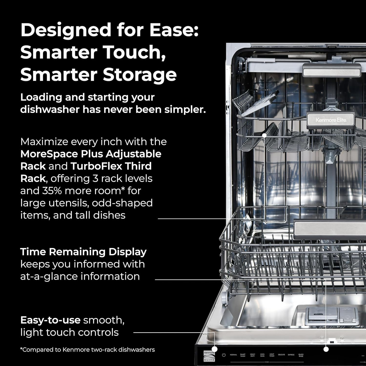TurboFlex Third Rack + Adjustable Interior: Get 35% more loading space for large utensils with the removable TurboFlex third rack. Need more height? Slide the trays aside to fit tall items in the middle rack. MoreSpace Plus Upper Rack adjusts to 3 heights