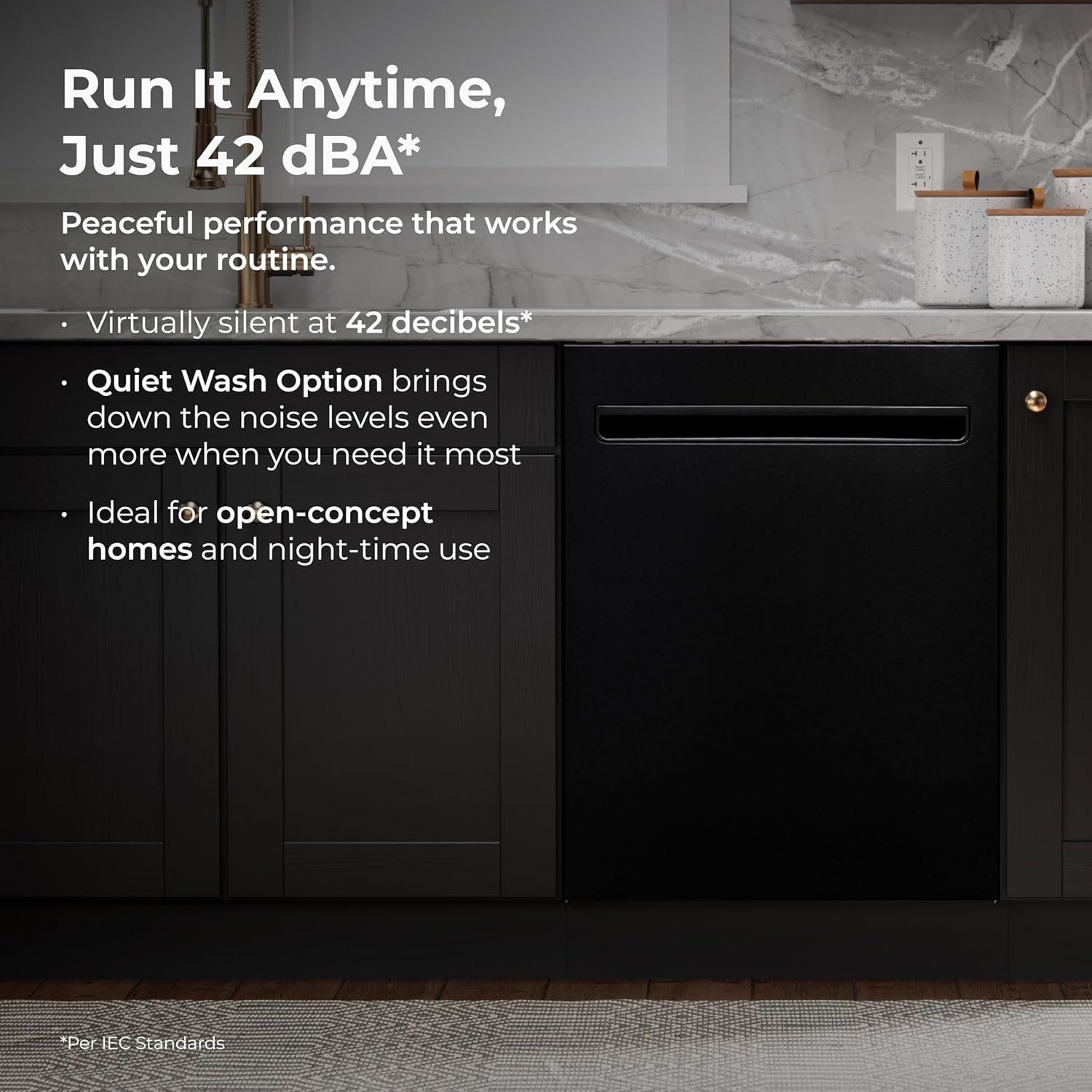 Whisper-Quiet Wash + Smart Features: This elite dishwasher runs at just 42 dBA with a QuietWash option for a whisper quiet cycle. LED floor light tells you when it’s running. Hidden touch controls and a sleek bar handle offer a streamlined look