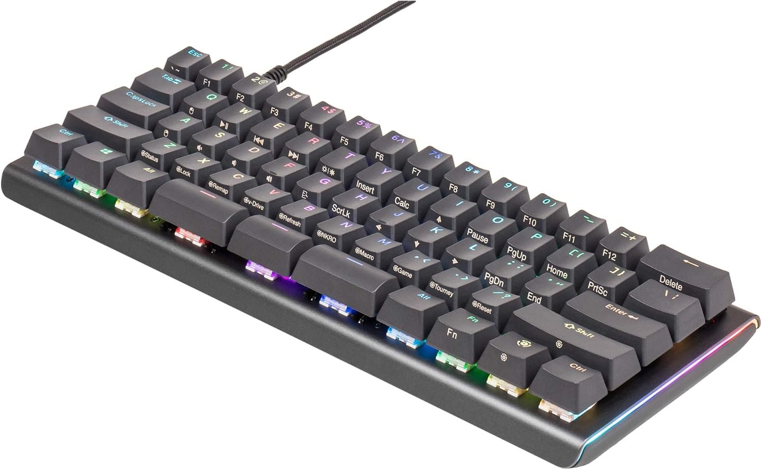 PROGRAMMABLE 60% LAYOUT: Ultra-compact aluminum keyboard with standard 60% layout and modular triple-space bar. Maximum portability and closer mouse placement.