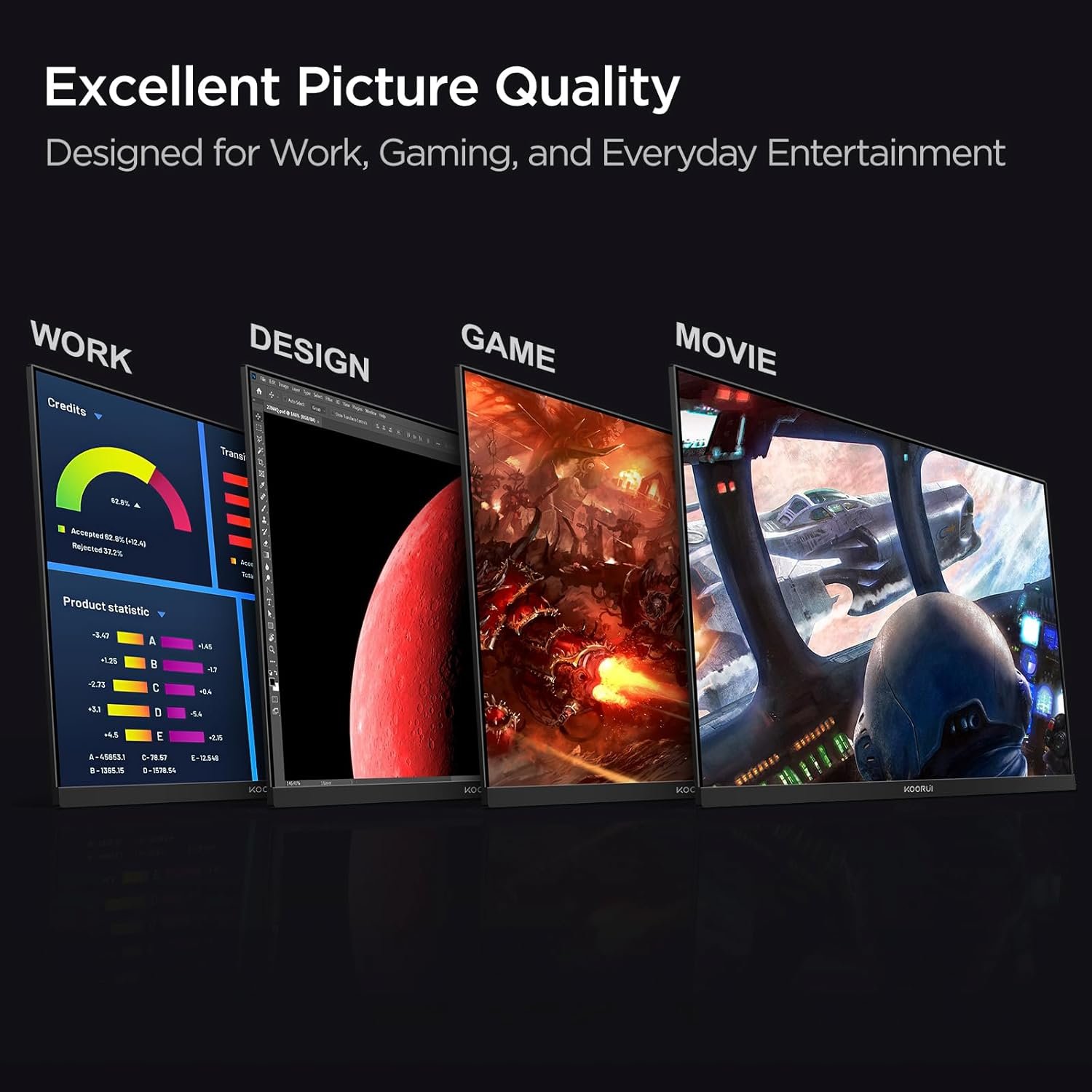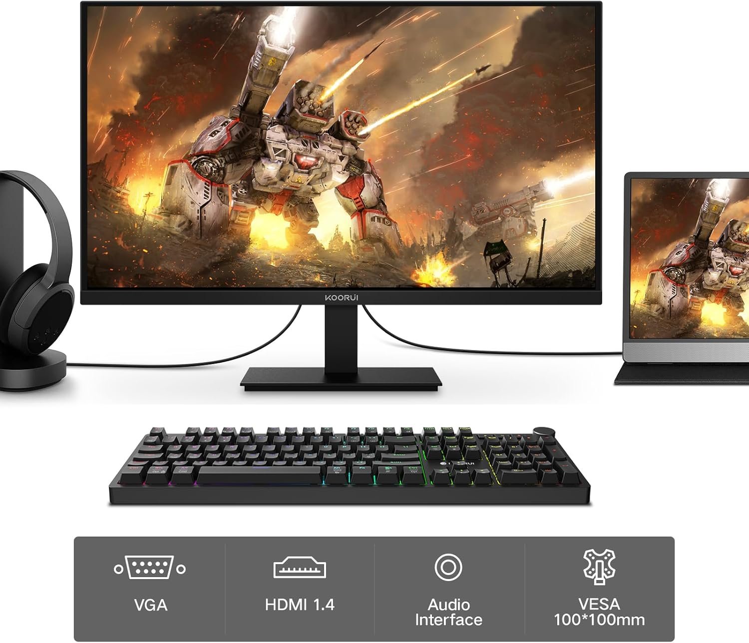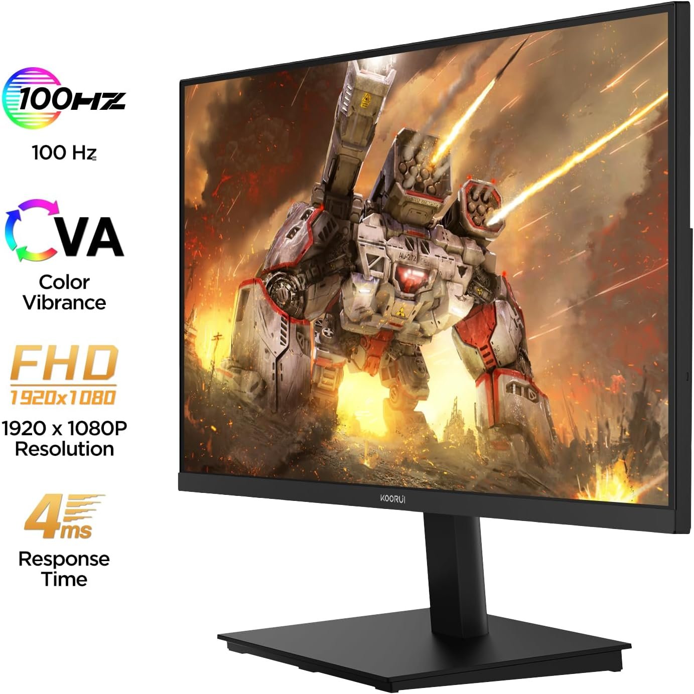 [Overwhelming Contrast Ratio] The KOORUI 21.5-inch gaming monitor uses a “VA panel” that has excellent light blocking properties and a clear black color, and has a much higher contrast ratio compared to TN and IPS panels. It is a panel that can be taken out.