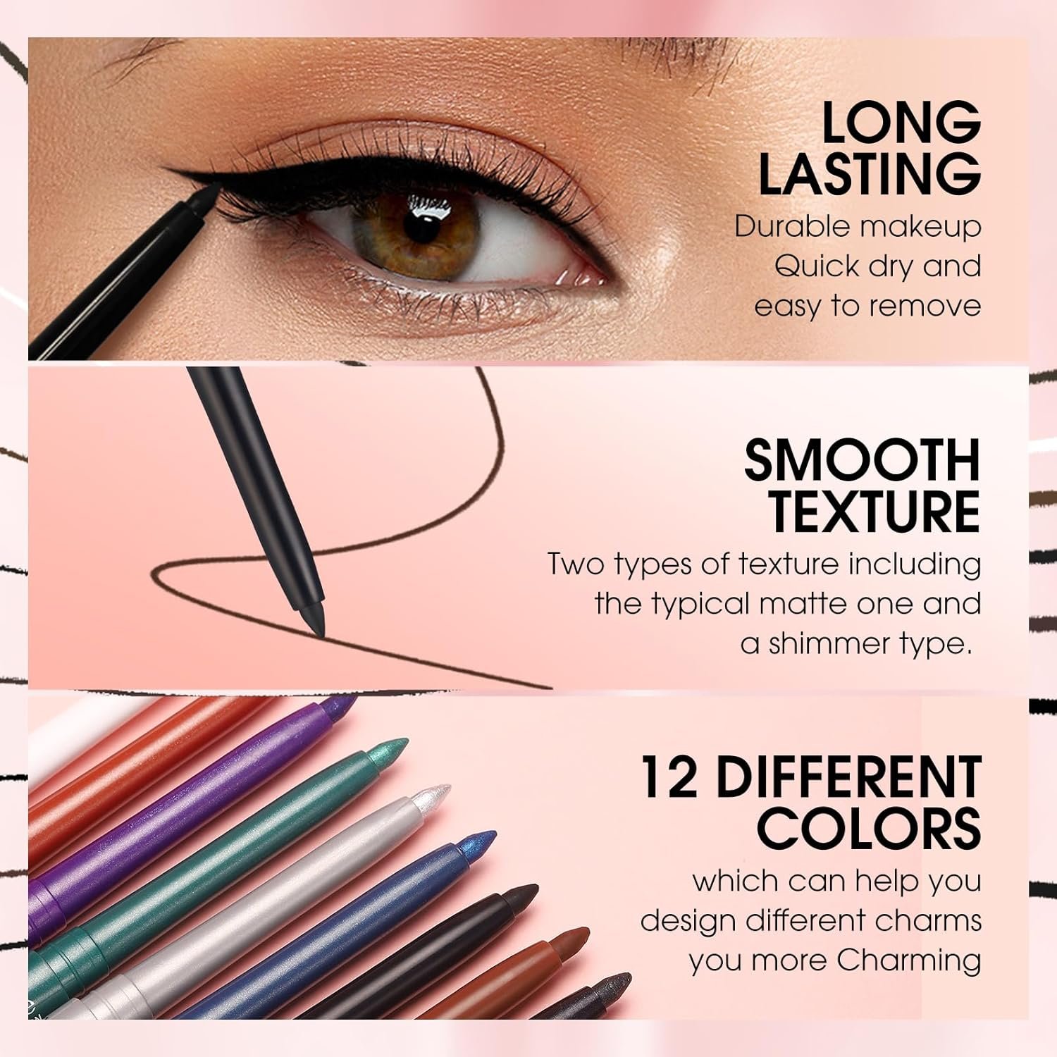 Matte & Shimmer Eye Makeup: With both matte and shimmer pencil in our set, the liners are versatile for creating various looks.