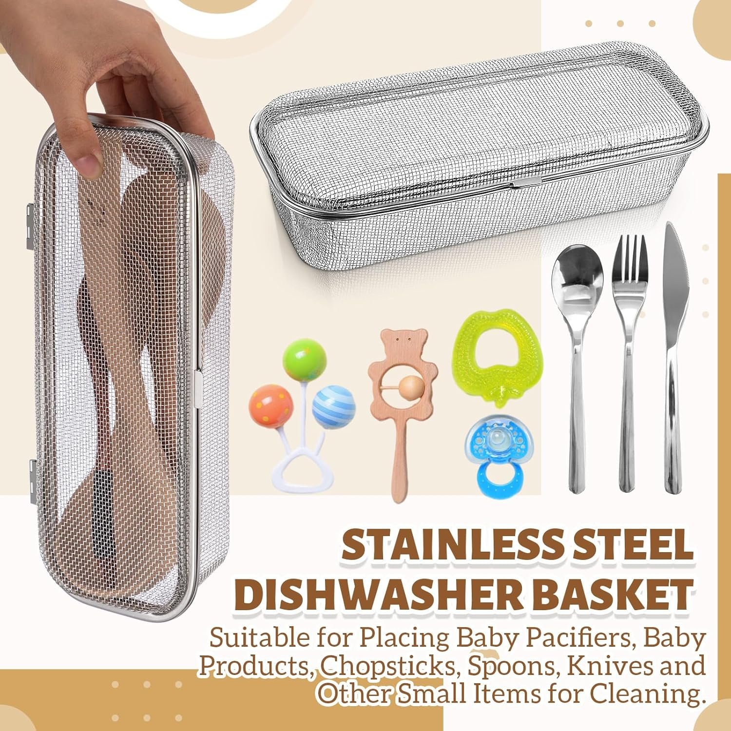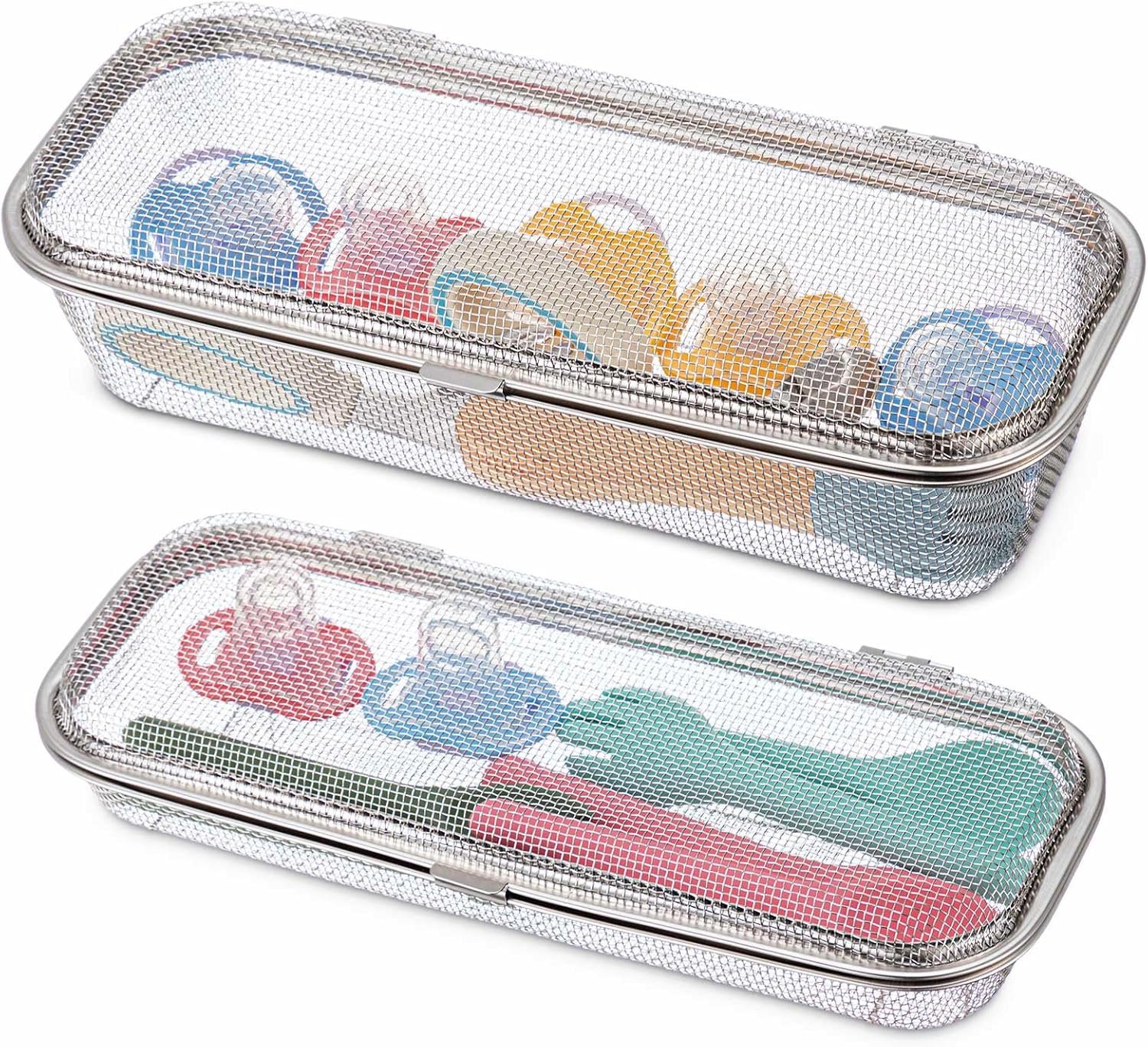 Durable Stainless Steel: crafted from 304 stainless steel, this dishwasher basket boasts a long lasting, rust resistant finish; It’s the thoughtful choice as a dishwasher basket for baby items, ensuring safe storage and washability of delicate accessories