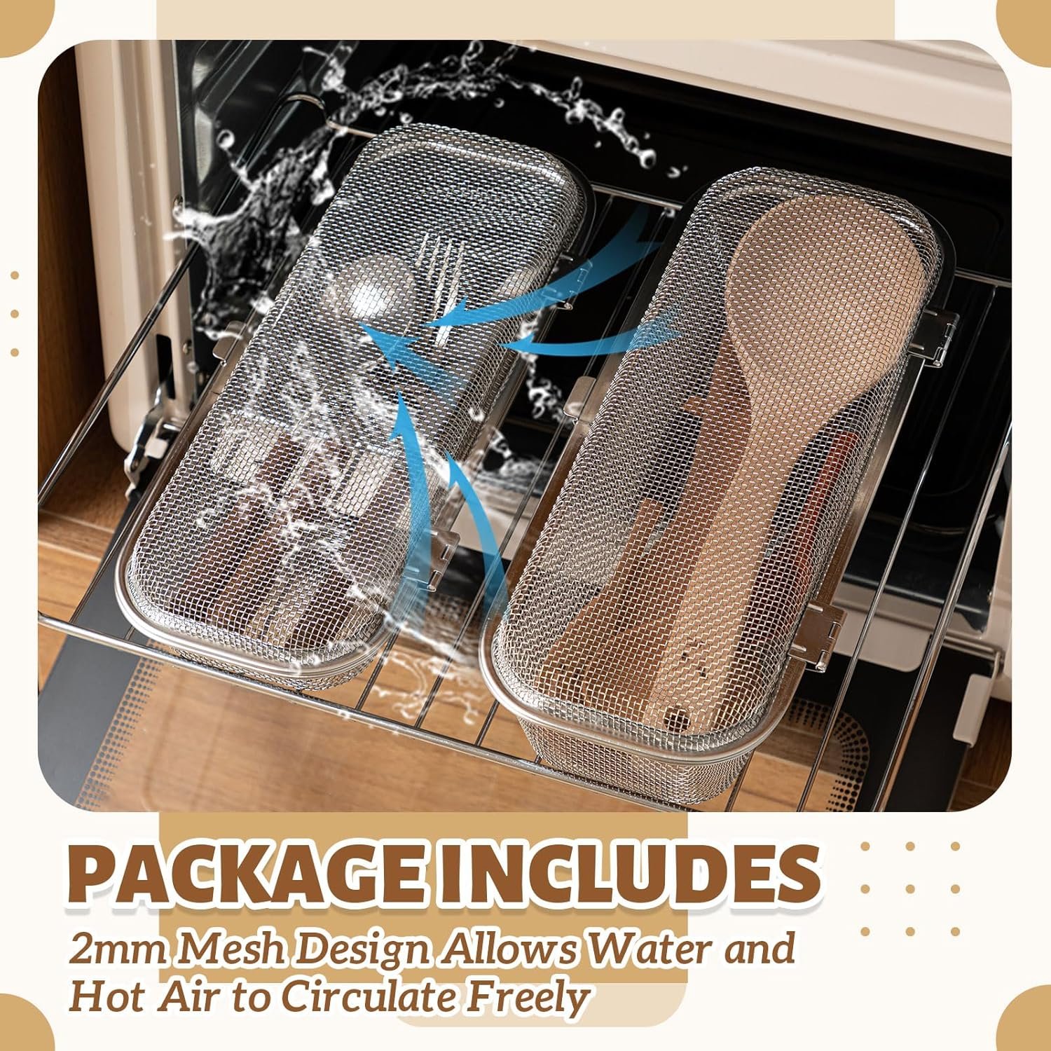 Efficient Cleaning Design: featuring a unique mesh layout, the dishwasher basket allows water and air to circulate freely, promoting thorough cleaning and drying; Say goodbye to water spots and streaks, and use it confidently as your dishwasher silverware basket replacement