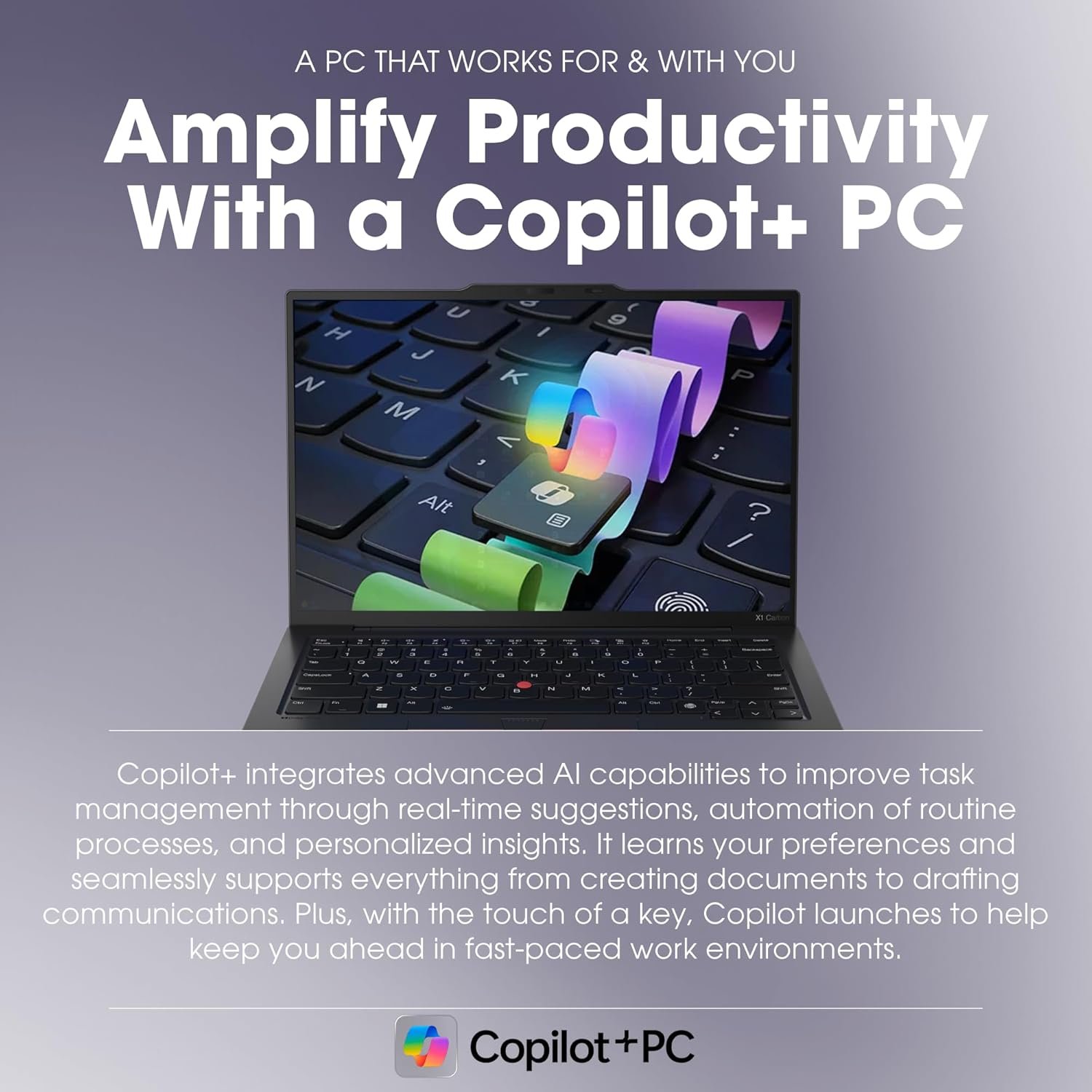 The ThinkPad X1 Carbon Gen 13 with Copilot+ PC boasts many even better features than the previous generation. It has a more powerful processor, longer battery life, and is lighter than the Gen 12. Plus, it has AI-assisted features like image generation and real time translation