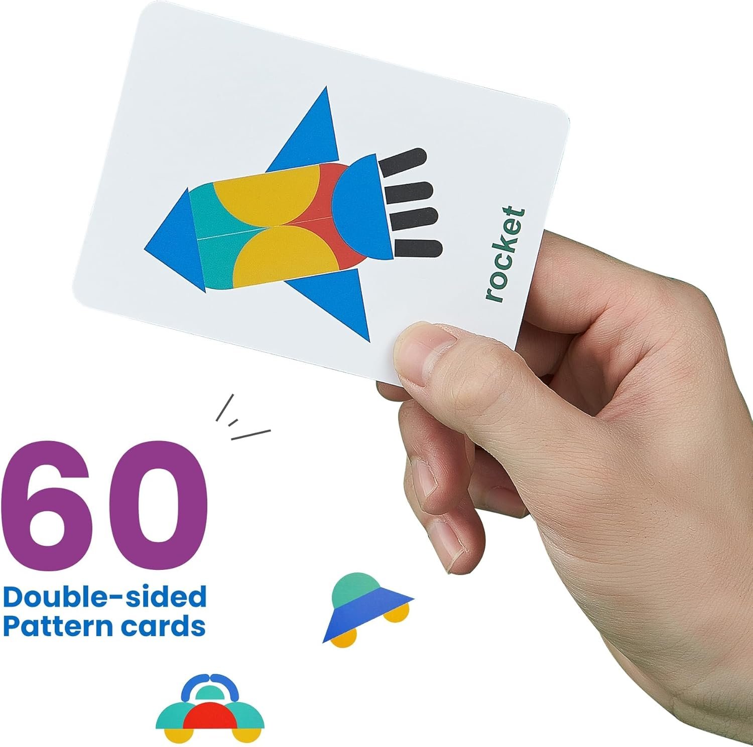 Contains 36 wooden shape pieces, 60 pattern cards and 2 iron tins for storing the pieces