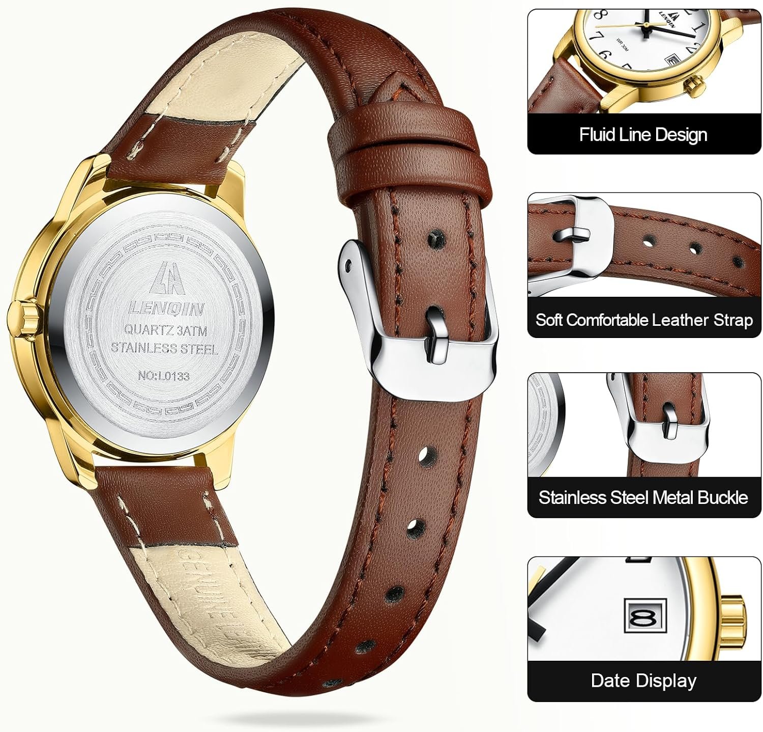LN LENQIN Ladies Watches Analog Quartz Watch for Women Waterproof Women’s Wrist Watches Easy Reader Womens Watch with Leather Strap