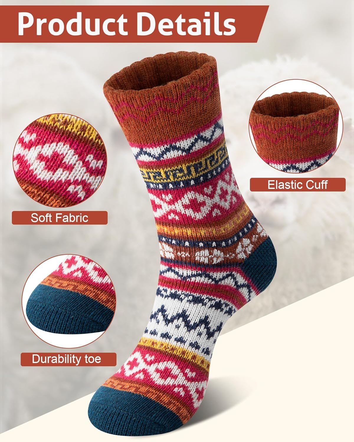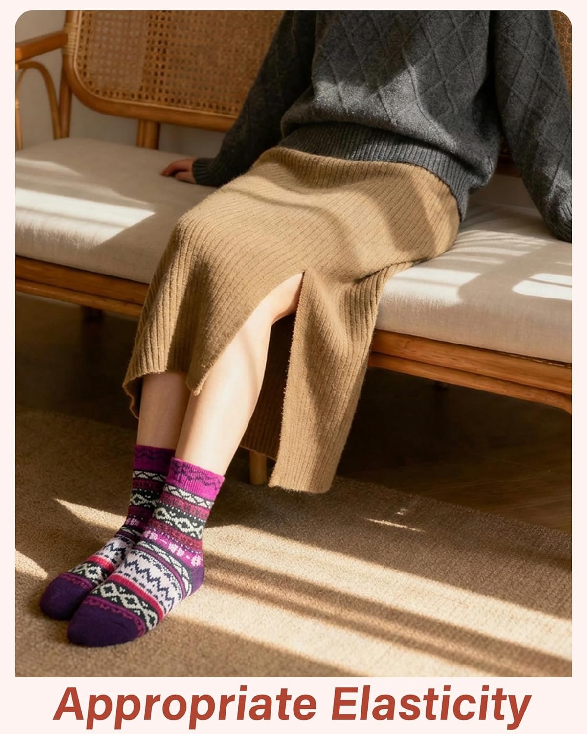 Customers find these socks provide perfect warmth without being too heavy, and appreciate their comfort, noting they’re not itchy and not too tight around the ankles. They receive positive feedback for their quality, softness, and appearance, with customers loving the colors and patterns. Opinions about thickness are mixed, with some finding them thick enough for winter while others consider them rather thin.
