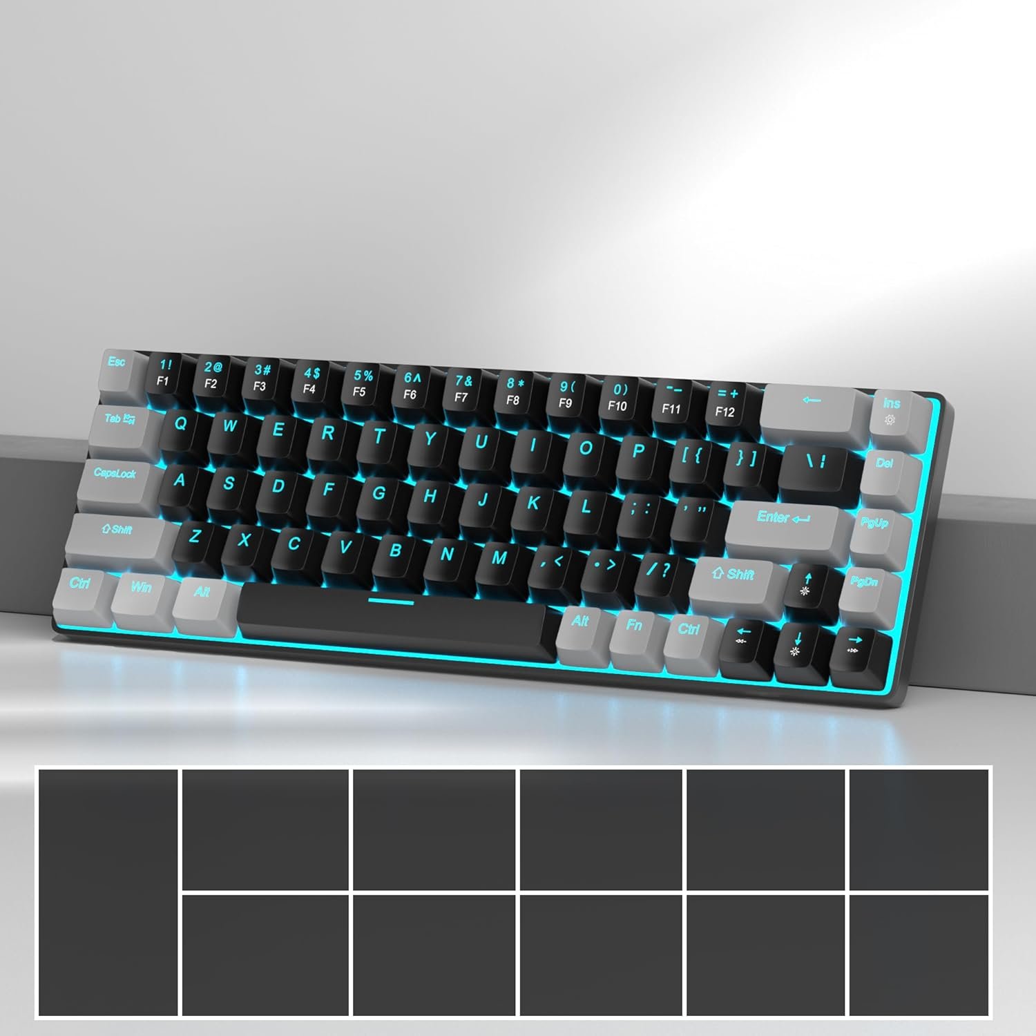 Mini portable 60% compact layout: MK-BOX is a 68 keys mechanical keyboard have cute small size, but with separate arrow keys and F1-F12, Fn function keys you need, can use it for gaming or work while saving space.