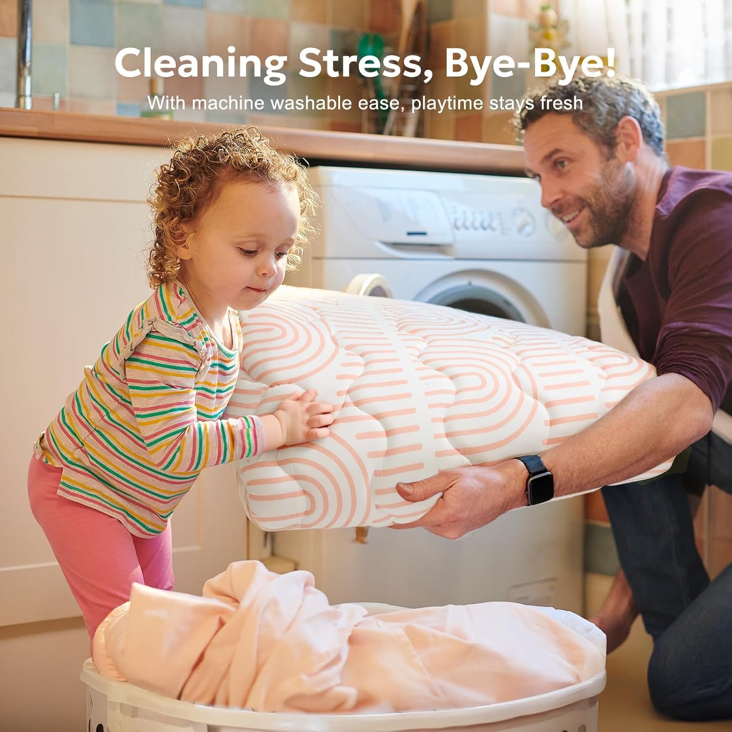 THICKER & SOFTER PREMIUM FOAM: At Mallify, we understand that comfort is essential for your little one’s development. Our baby play mat is crafted from microfiber fabric, providing a soft, skin-friendly surface for your baby’s delicate skin. The thick, supportive foam of the baby play mats for floor helps prevent those little bumps and tumbles, allowing your baby to explore with confidence and comfort at every step of their journey