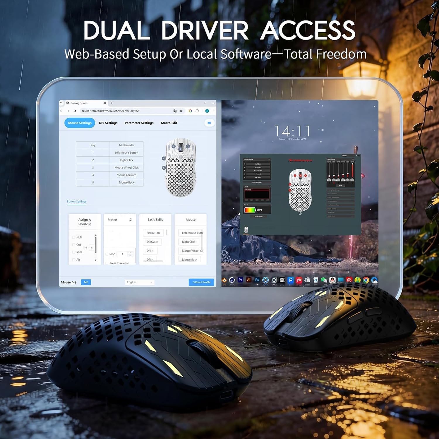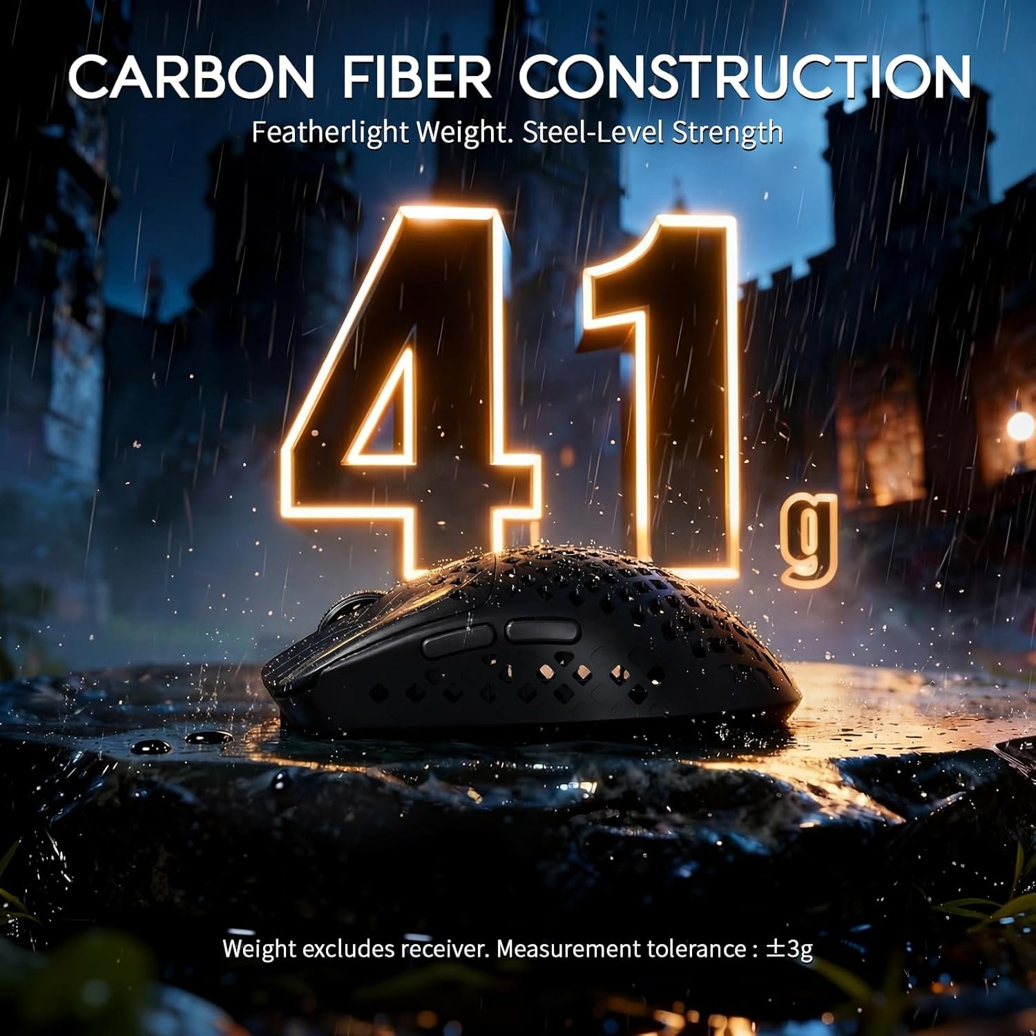 【Ultimate FPS & MOBA Weapon: Ultra-Lightweight & Durable】Dominate fast-paced competitive games with this ultra-lightweight champion. MAMBASNAKE M2 Mouse is honeycomb-inspired, injection-molded carbon fiber shell achieves a perfect 41g weight for maximum agility, without sacrificing pro-grade durability and drop resistance. Experience the fast, responsive control that esports pros demand.