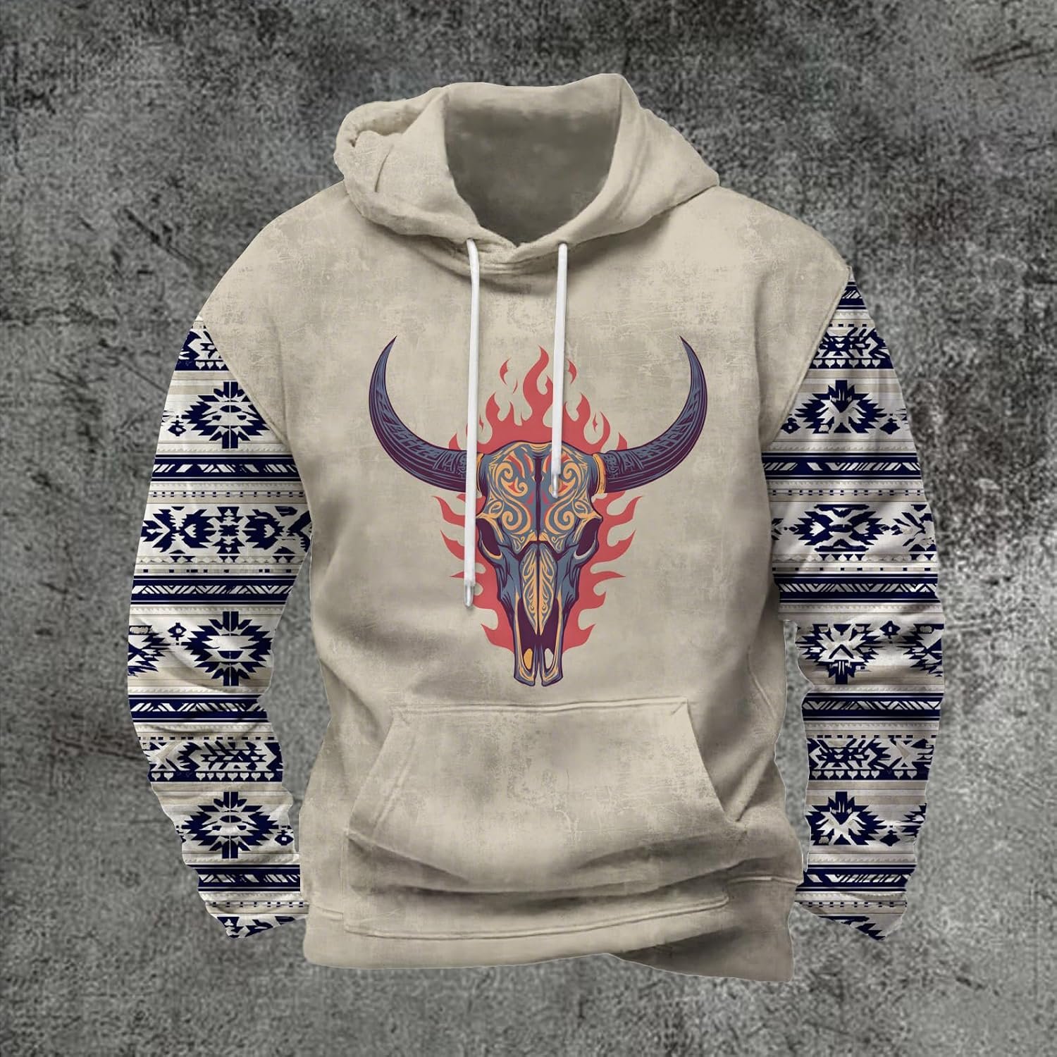 Mens Casual Pullover Sweatshirts Western Aztec Graphic Hoodies