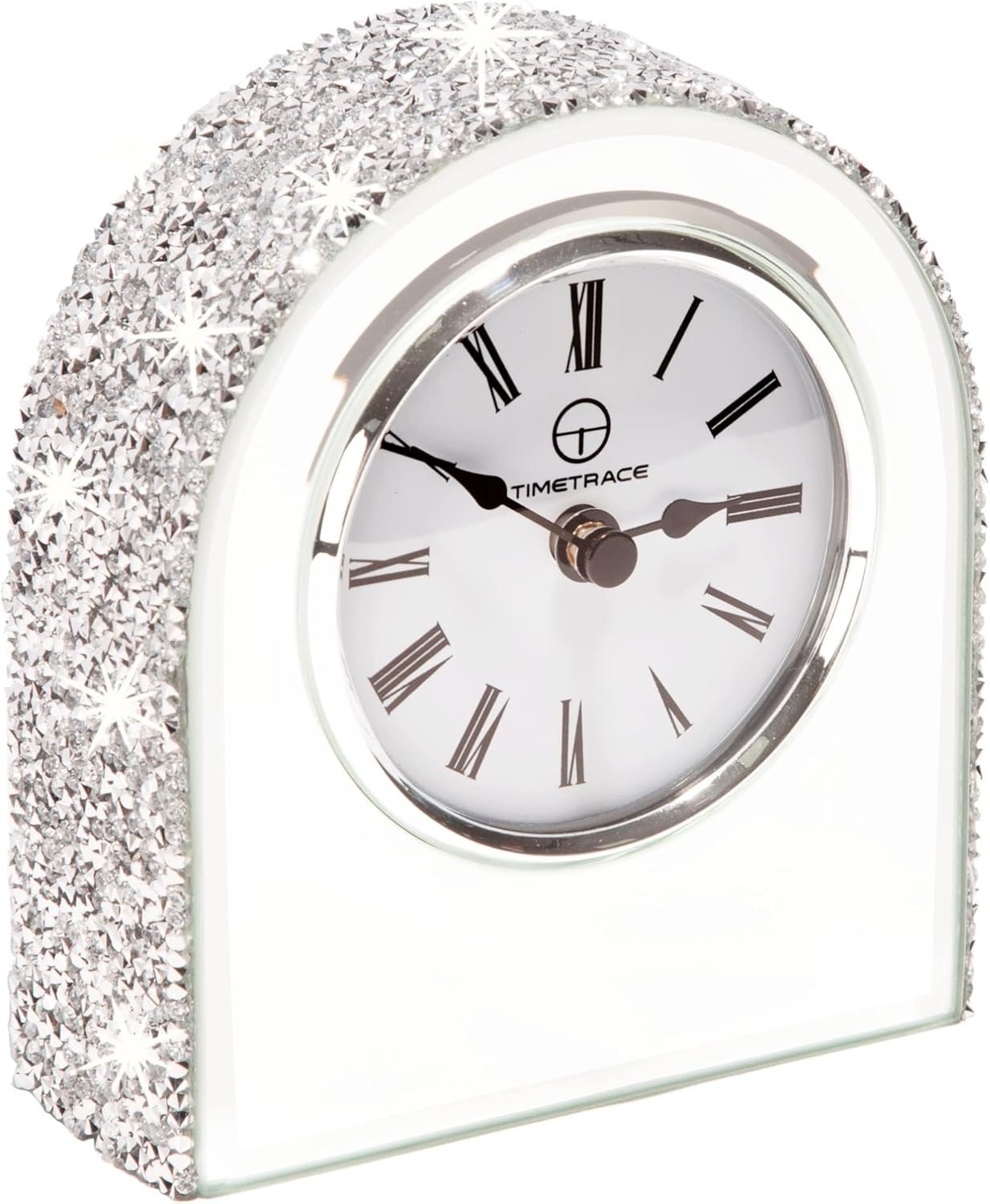 Mirror Glass Desk Table Clock with Diamond Inlay, 5.1 inches in Height, Morning Call for Desk Fireplace Living Room Home Sparkle Twinkle Bling Decor