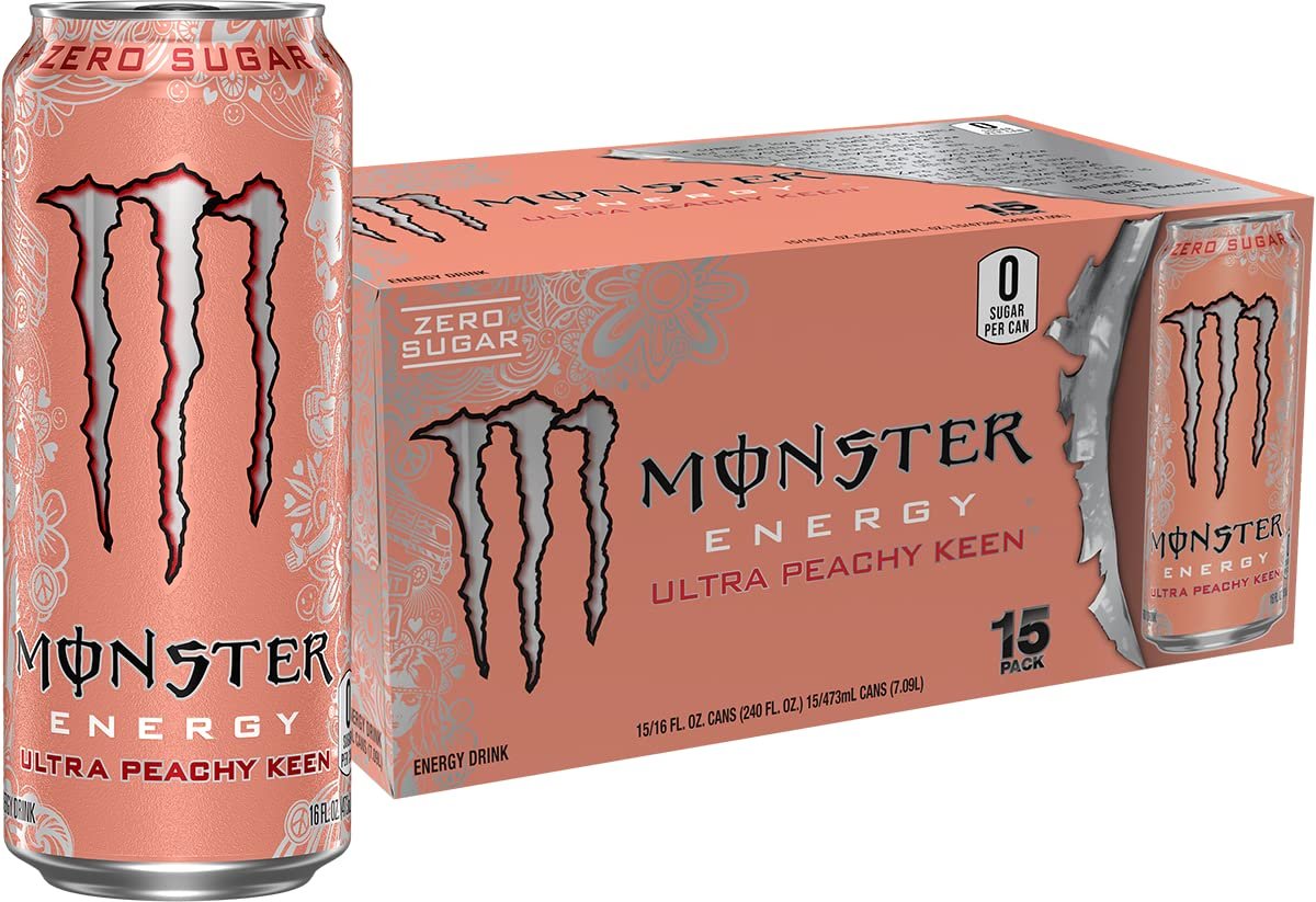 STOCK UP WITH A 15 PACK | Time to stock up. For those looking for a Monster that’s lighter tasting, has zero sugar, and contains the full Monster Energy blend, Monster Energy Ultra Peachy Keen is available in a convenient pack of 15