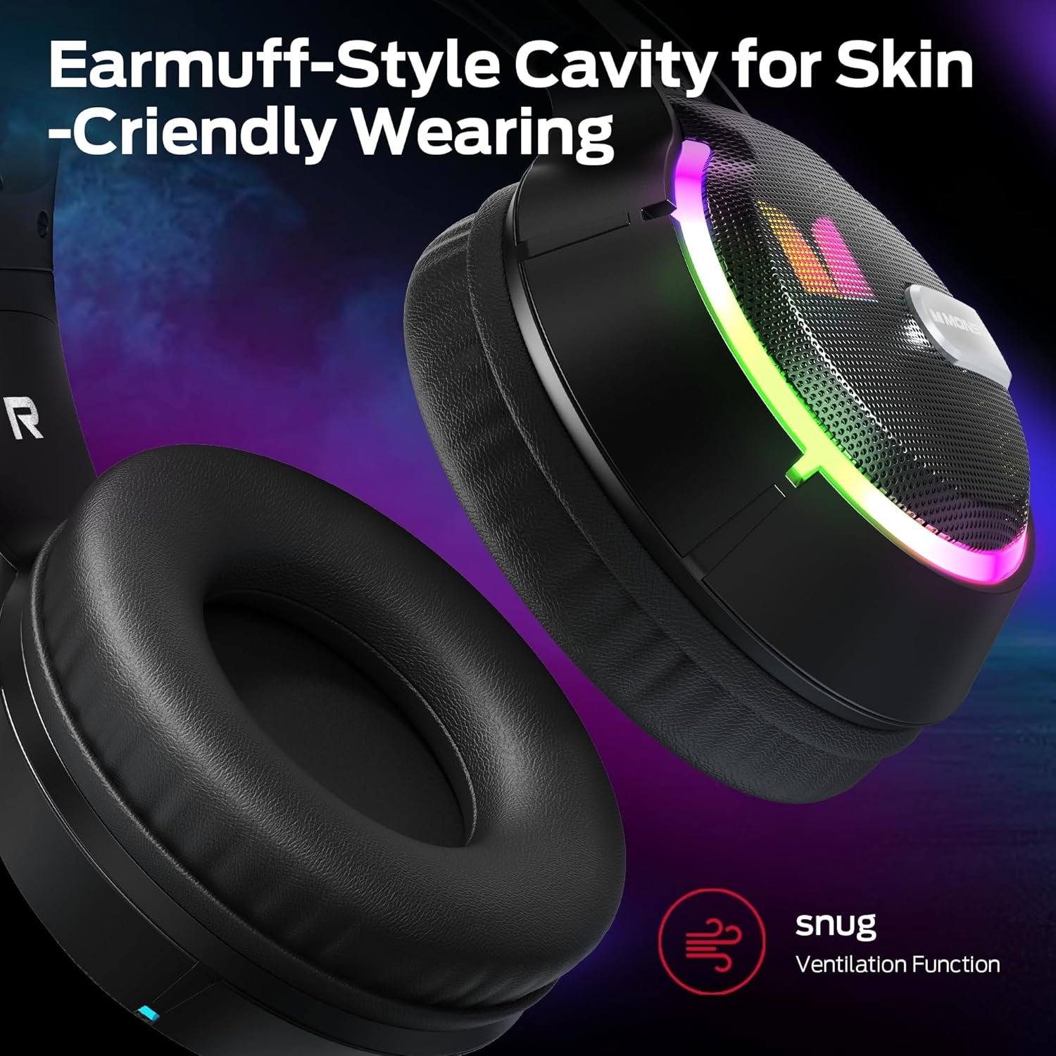 【Comfortable earmuff design】Soft and smooth imitation protein leather earmuffs, comfortable fit without negative pressure, bring you a dual experience of music and wearing, optimized headband ergonomic curvature, earmuff-style cavity skin-friendly wearing provides you with excellent comfort during hours of gaming, suitable for gamers of all ages.