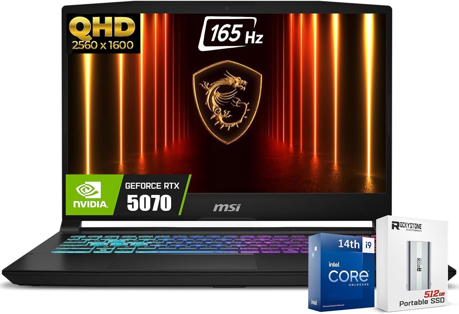 MSI Katana HX Gaming Laptop, 15.6” 165Hz QHD+ IPS Display, 24-core i9-14900HX (UP to 5.8 GHz, GeForce RTX 5070, AI&VR Ready, Copilot+ PC, RGB Backlit Keyboard, Win 11 Pro, Black(32GB DDR5| 2TB SSD)