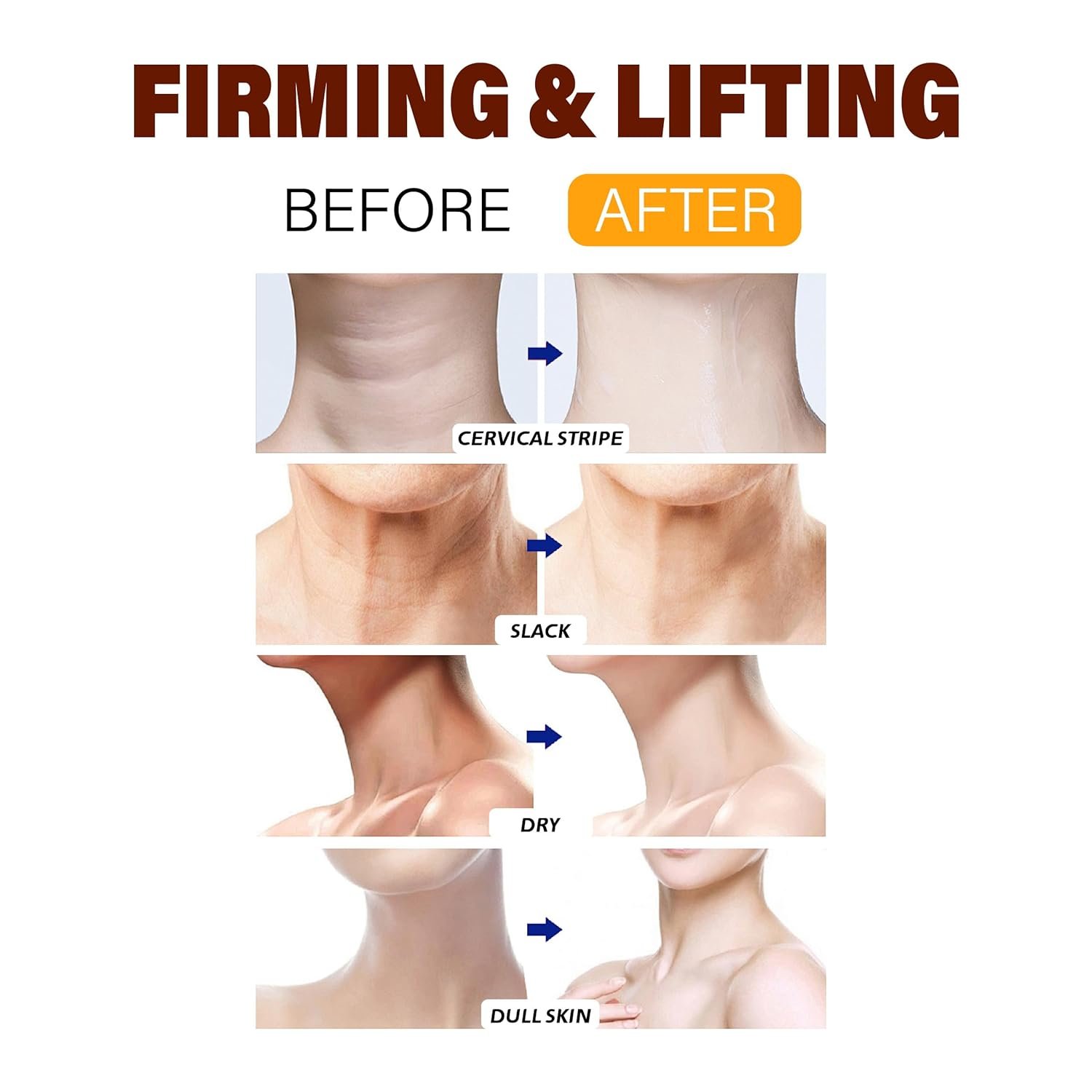 Neck & Chest Firming Solution:Specifically formulated for the delicate neck and chest area, this firming cream helps tighten loose skin, reduce sagging, and visibly smooth wrinkles and fine lines for a more youthful, lifted appearance.
