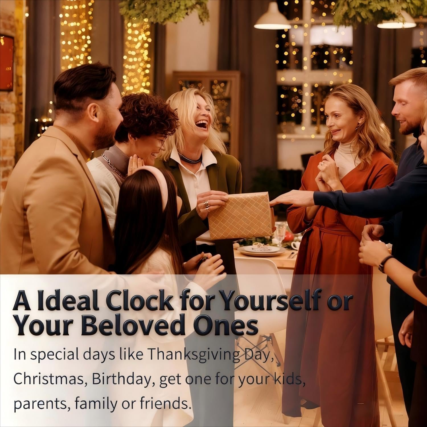 The NOKLEAD 5252 desk clock with big 5.9-in LED display for easy reading and setup. It offers 5-level brightness, 2-level alarm volume, 12/24H time format, and a 9-minute snooze function. Its elegant wood grain design makes it an ideal clock for bedrooms, living rooms, offices, dormitories, and more