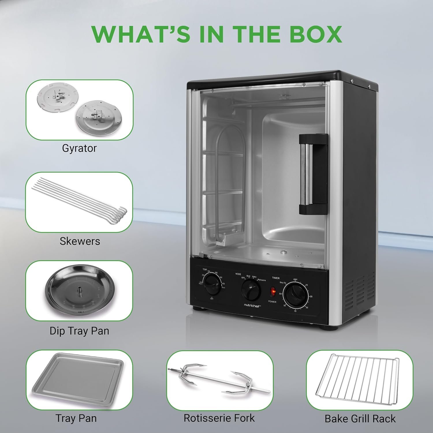 WARRANTY: When you purchase the NutriChef Vertical Rotisserie Oven, you receive a worry-free 1-year warranty. Our friendly customer service team is always available to assist you with any questions or concerns.