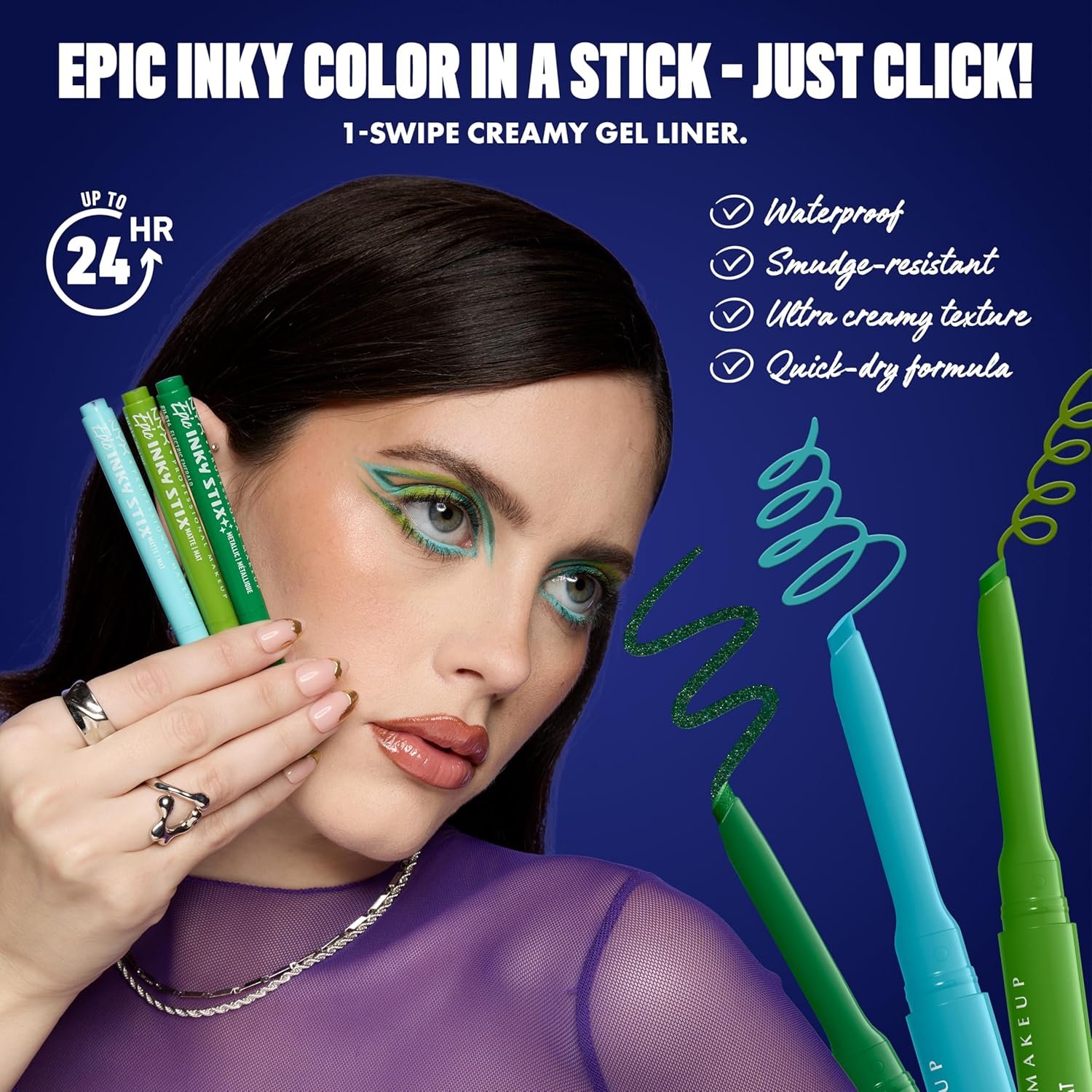 Epic Inky Color In A Click: NEW Epic Inky Stix, waterproof cream mechanical gel eyeliner that delivers 1-swipe fluid color that lasts up to 24HR