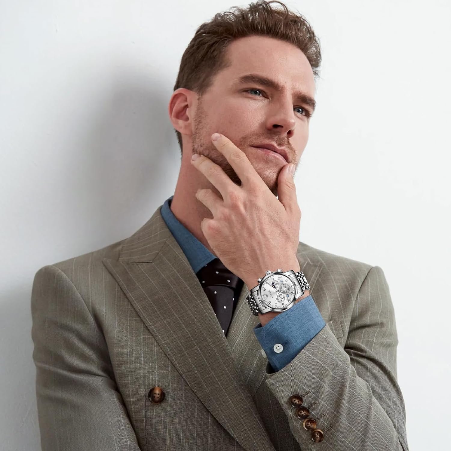 Luxury Gifts Silver Wactehs for Men,The watch is very stylish and durable, with precise timing and can with stand the test of time,Suitable for Husband, Boyfriend,New Year,Christmas,Thanksgiving,Birthday,Father’s Day,Wedding,Anniversary,Graduation Ceremony.