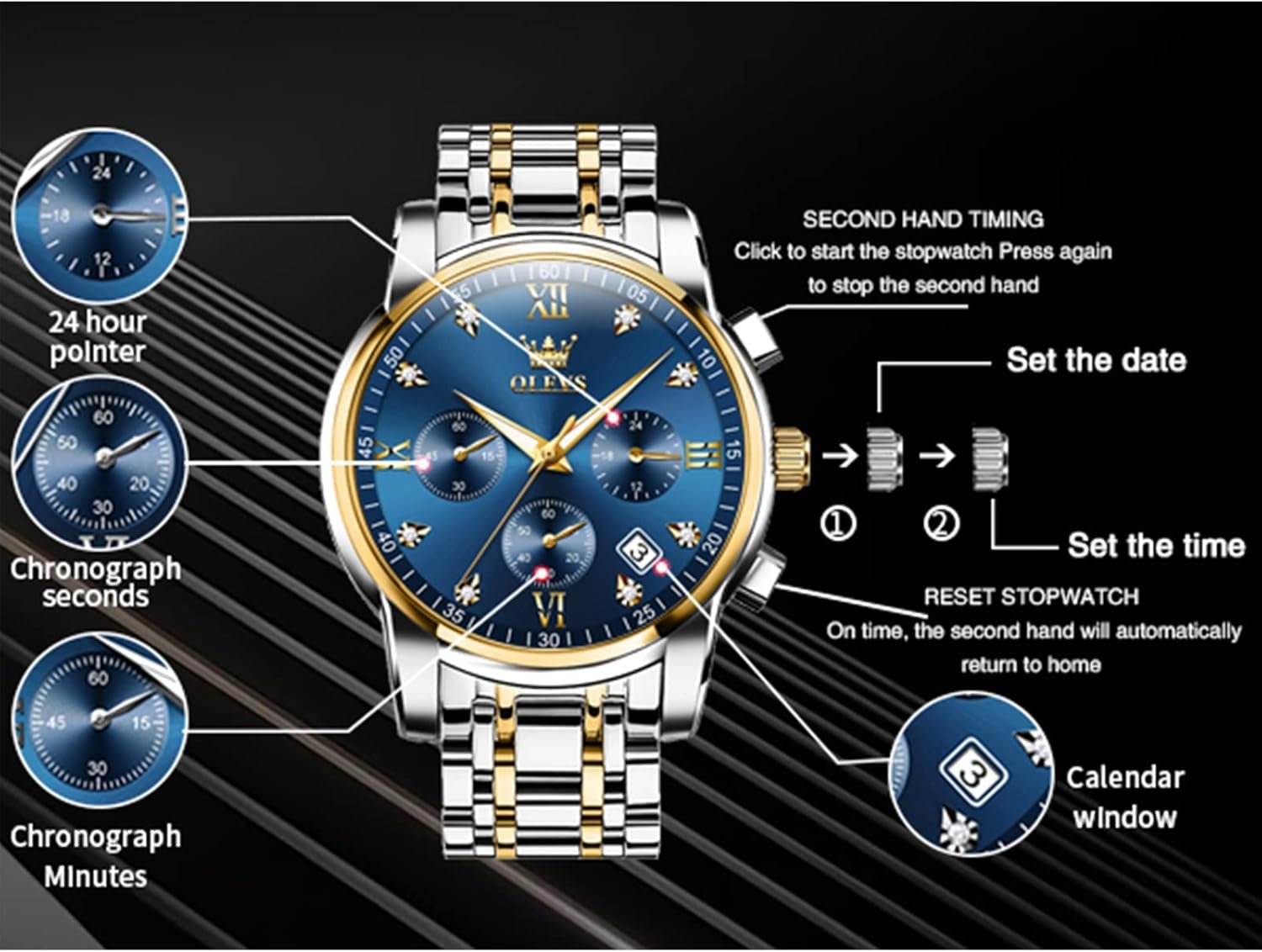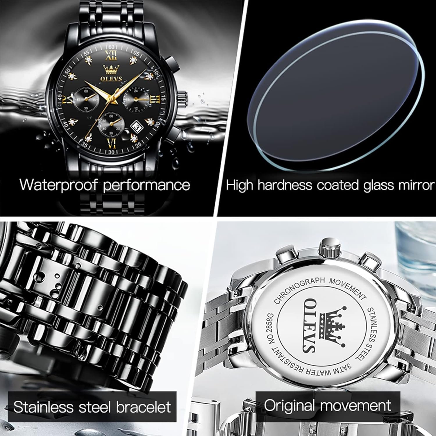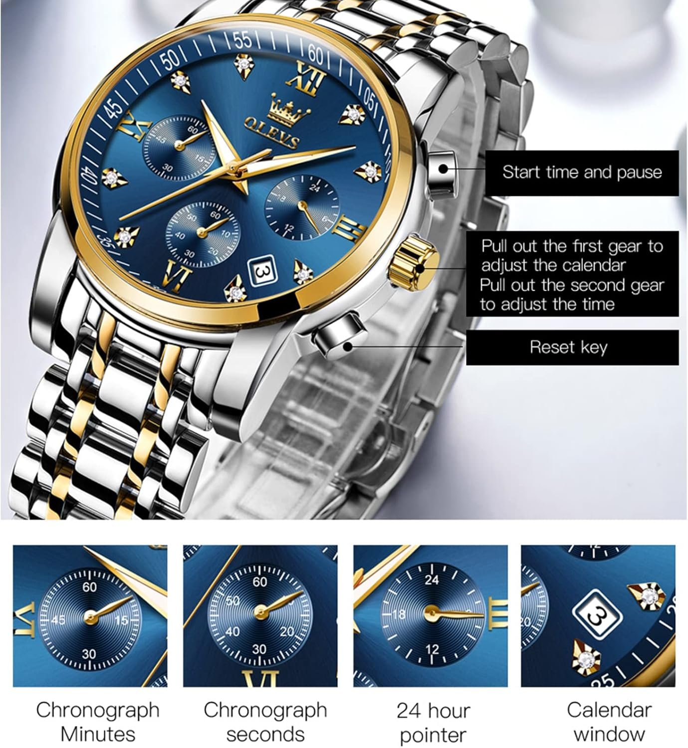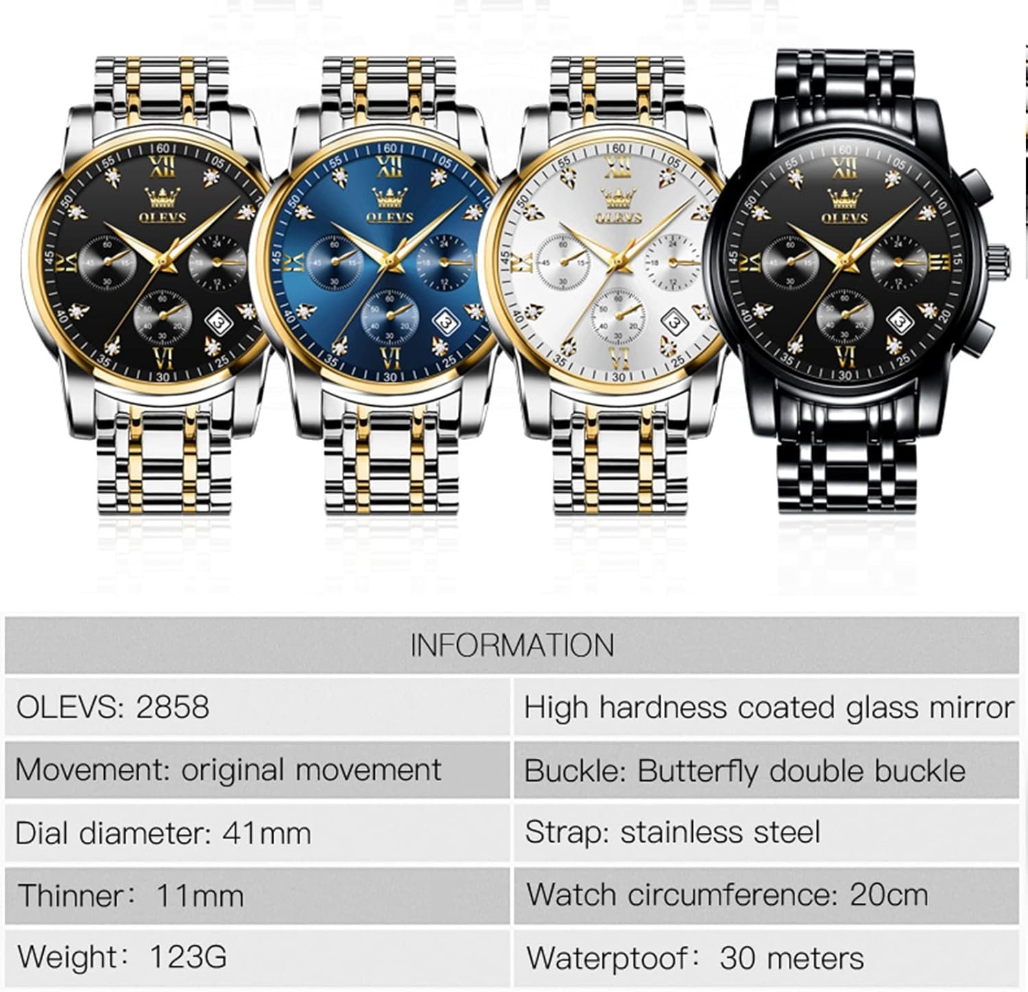 OLEVS Mens Watches Waterproof Stainless Steel Adjustable Bracelet Watch Quartz Analog Watch for Men Fashion Business Classic Mens’s Wrist watch’s Casual Watches Gold/Blue/Black/White/Face/Dial