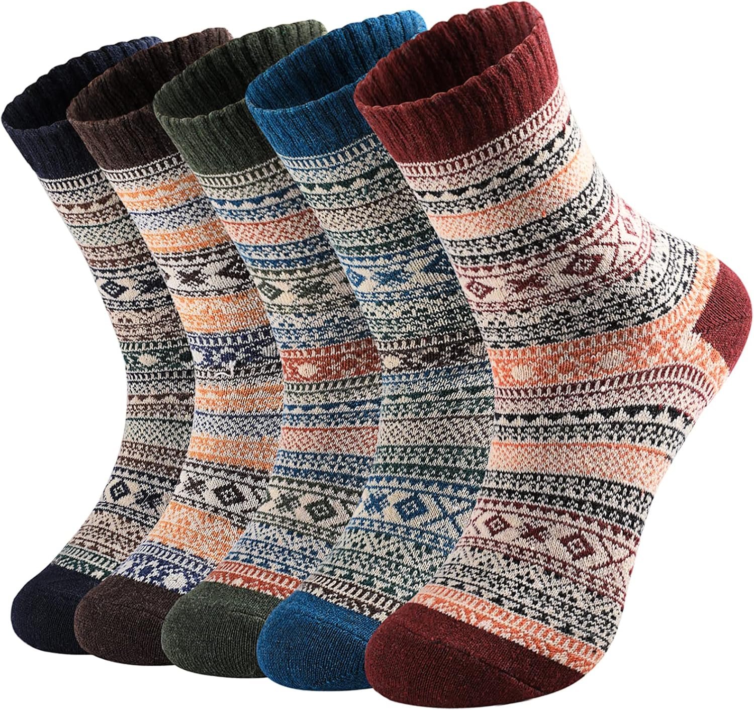 Customers find these wool socks keep feet warm and appreciate their comfort, noting they’re not itchy and get softer after washing. The socks receive positive feedback for their quality, style with pretty patterns, and colors that don’t fade. Customers disagree on the thickness, with some finding them thin enough for wearing with other socks while others wish the fabric was thicker. The fit is also mixed, with some finding them snug while others say they’re too tight, particularly around the ankles.