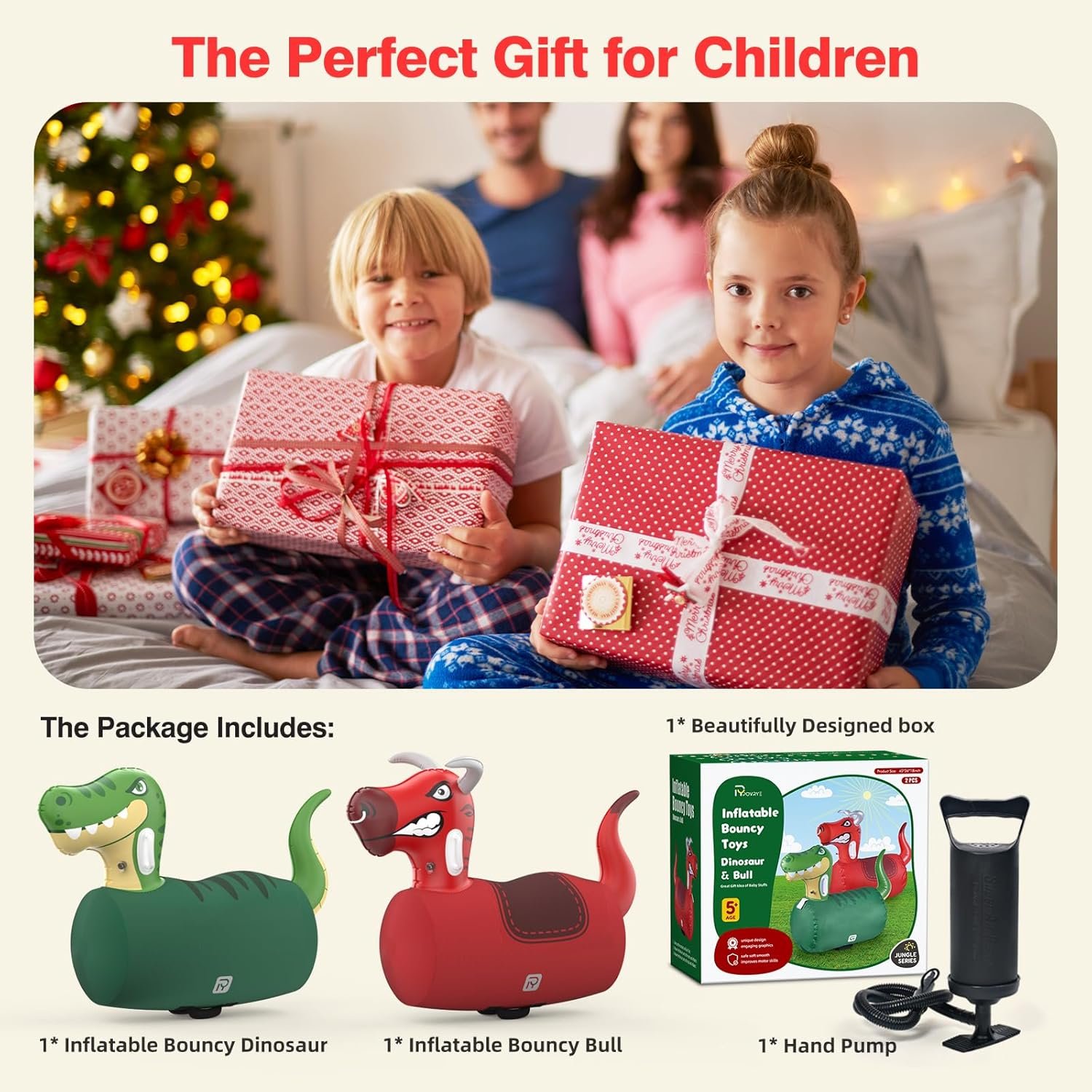 The Ultimate Holiday Gift: Still looking for a unique Christmas or birthday present? This inflatable dinosaur bull is both a fun toy and a festive decoration, making it the perfect holiday gift for kids and families. This combo is an ideal gift among active outdoor toys, perfect for families with multiple children and for parents looking to encourage physical play with engaging ride-on toys