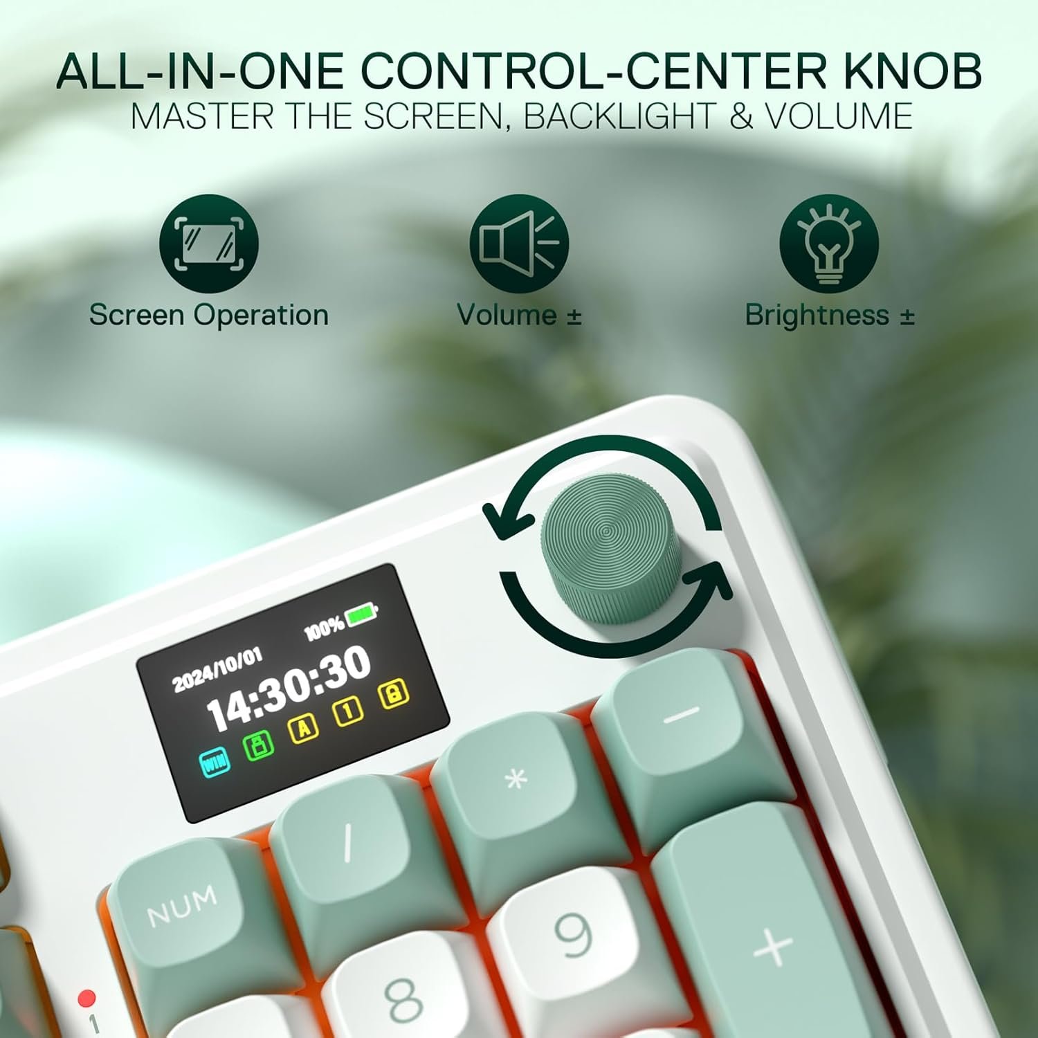 ONE-Knob Control – Armed with a convenient easy access control knob, the keyboard backlight brightness and media (volume, play/pause, switch) are all in control with no hassle. Plus functionary with no extra keys or space to waste.