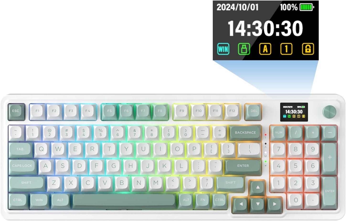 Smart Info-Island Screen – 1.14 in info center TFT screen, gathering keyboard info, connection mode, battery level, typing status, unveiling everything you want to know, enjoy gif meme customized fun for the present mood.
