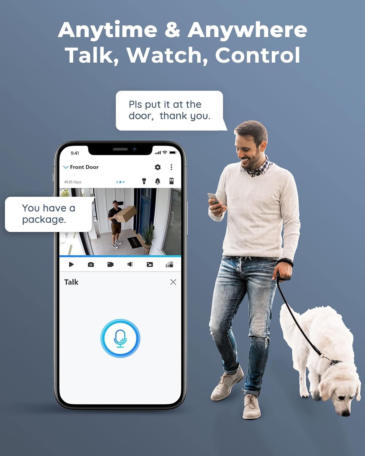 TWO-WAY TALK — The 12MP camera of this home security system has a speaker built-in for two-way communication with your family as well as threat deterrence. Simply press a button on Reolink App or Client to talk.