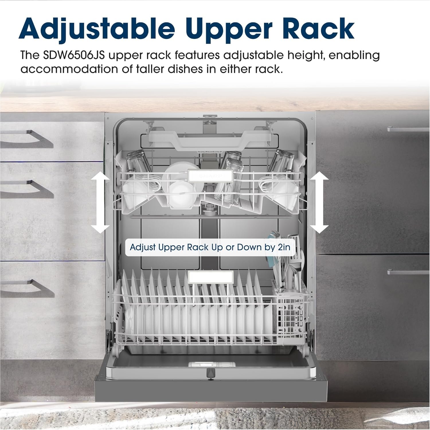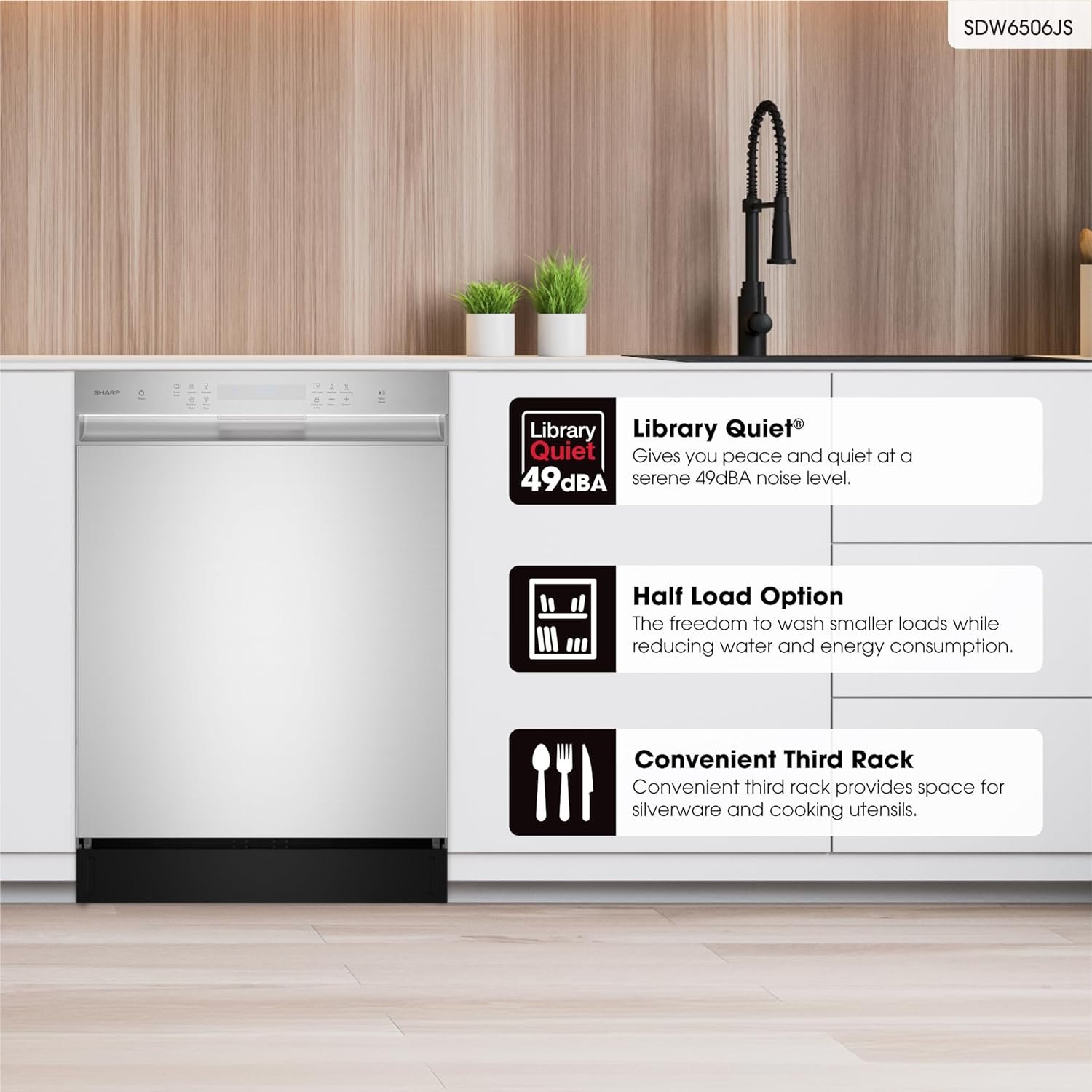 Sharp SDW6506JS 24-inch Stainless Steel Dishwasher, 49 dB, Third Rack, 12 Place Settings, Front Touch Controls