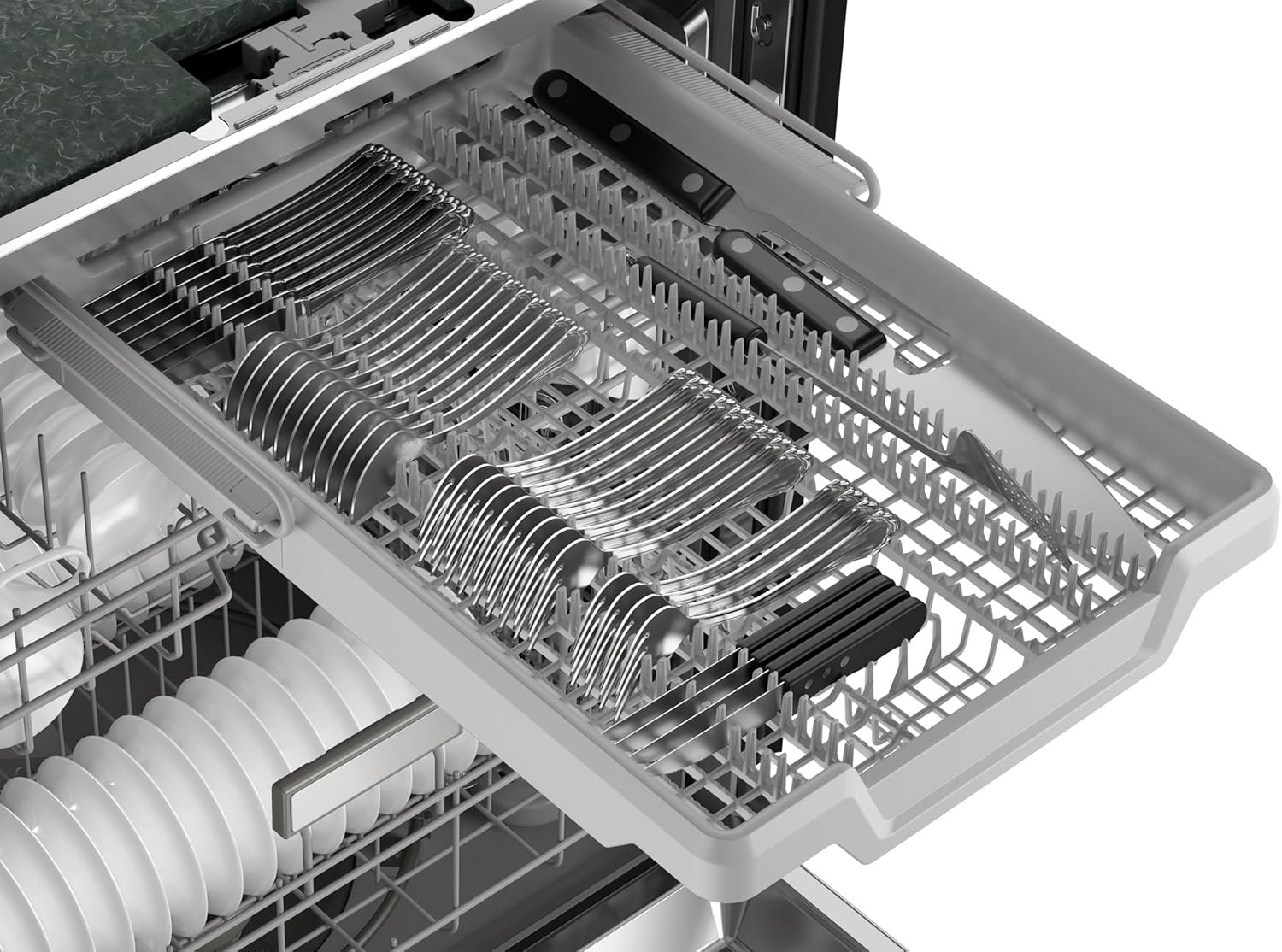 VERSATILE CAPACITY: Features three racks including a specialized third rack for silverware and cooking utensils, accommodating up to 12 place settings