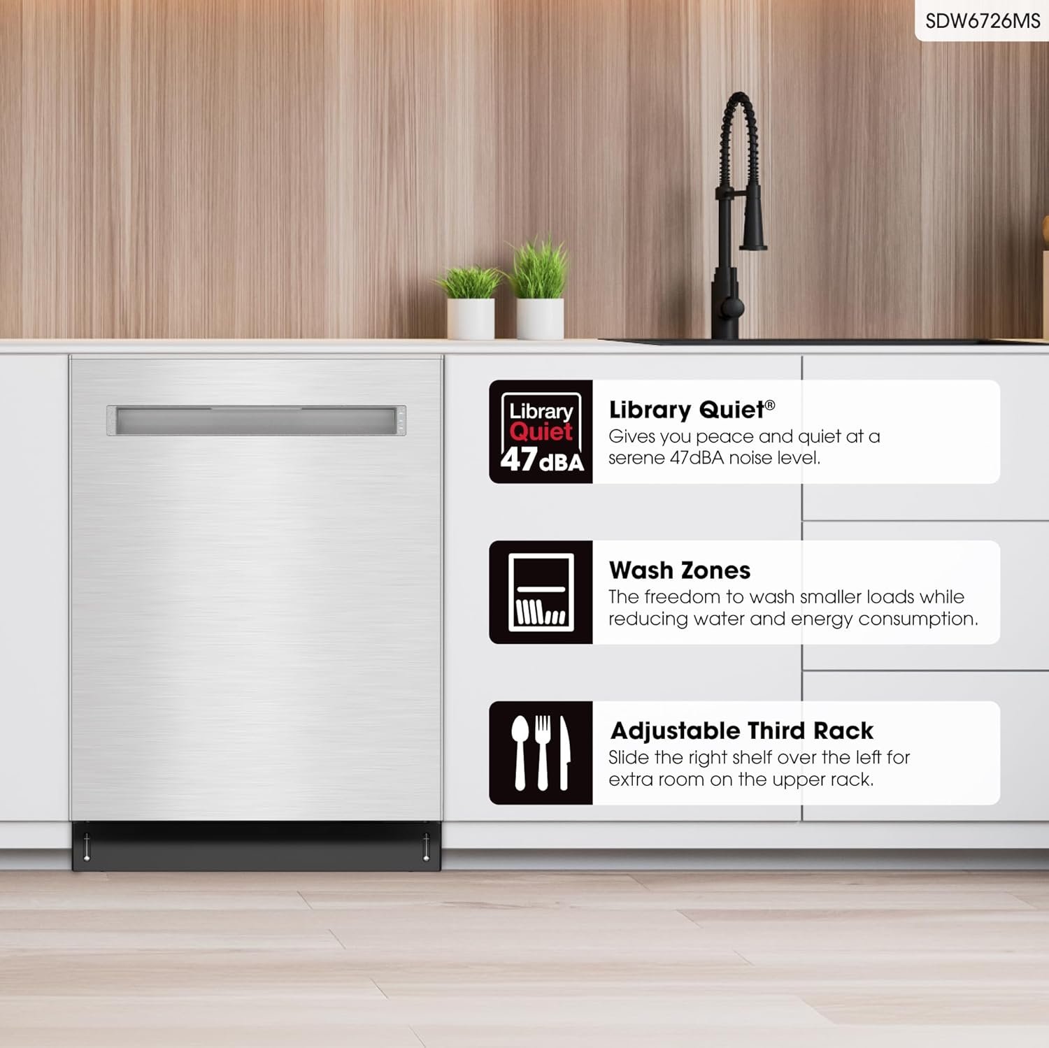 QUIET OPERATION: Library Quiet technology delivers peaceful dishwashing at just 47 dB noise level, perfect for open-concept homes
